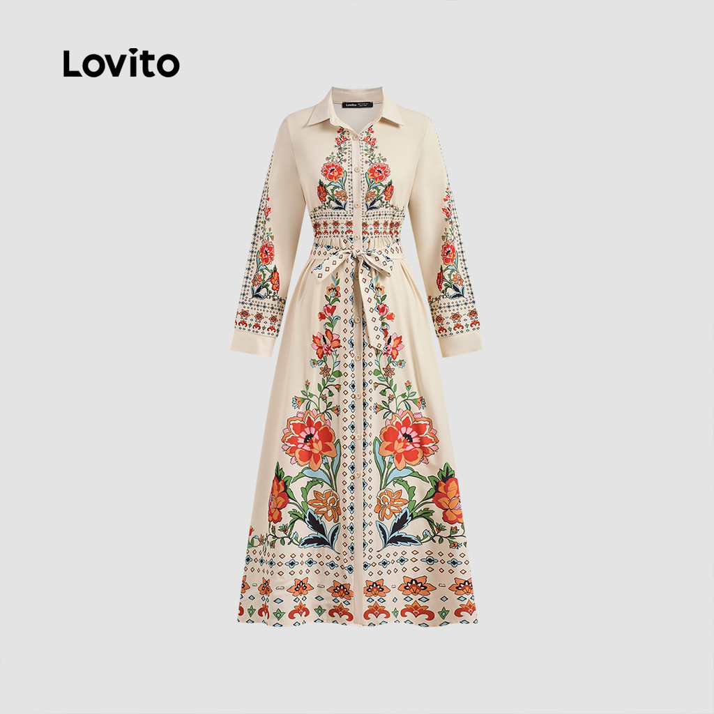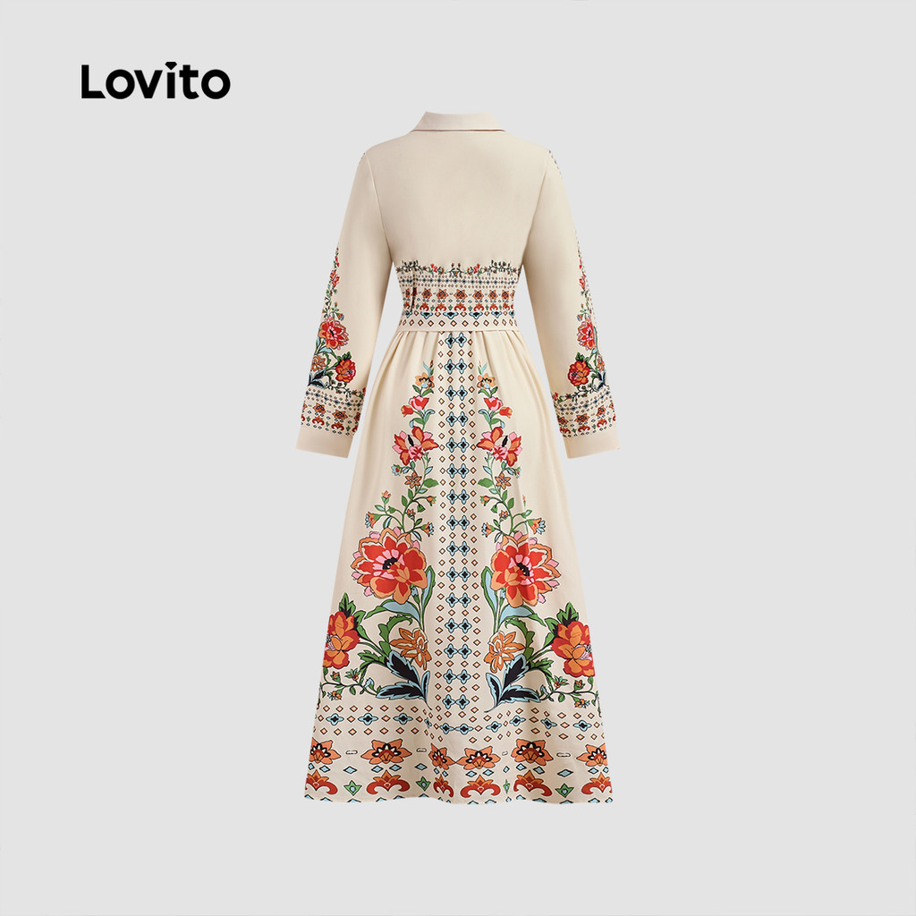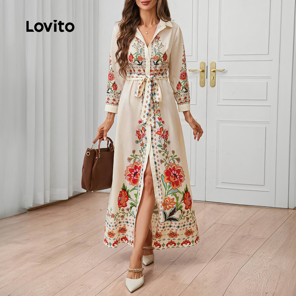 Lovito Vestido feminino Boho com estampa floral e detalhe de costura frontal LBL23617