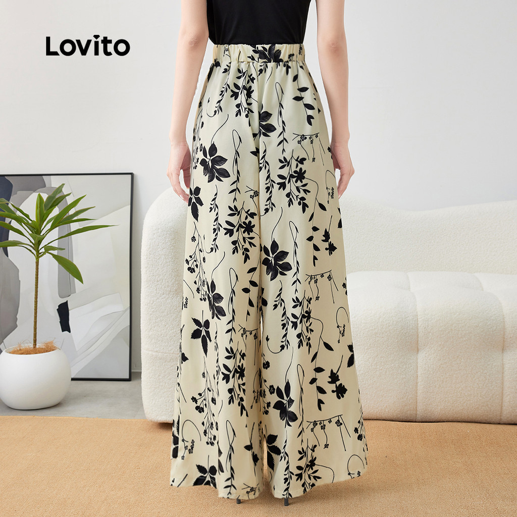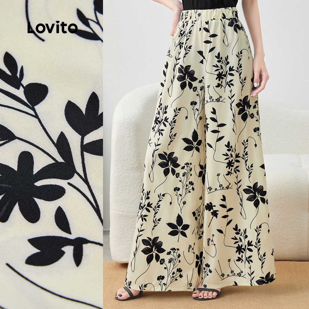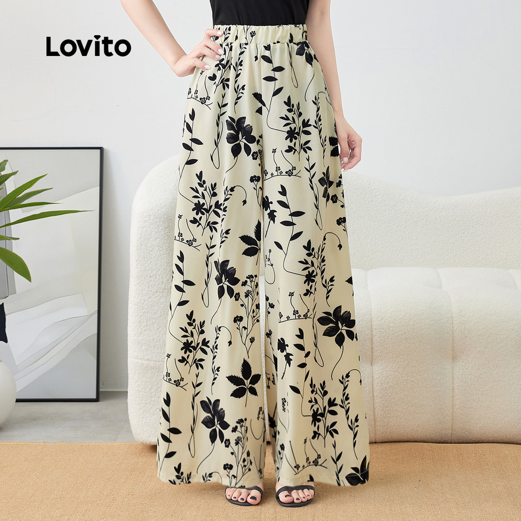 Lovito Calças Casuais Primavera/verão Calça Damasco para mulheres L143AD1756