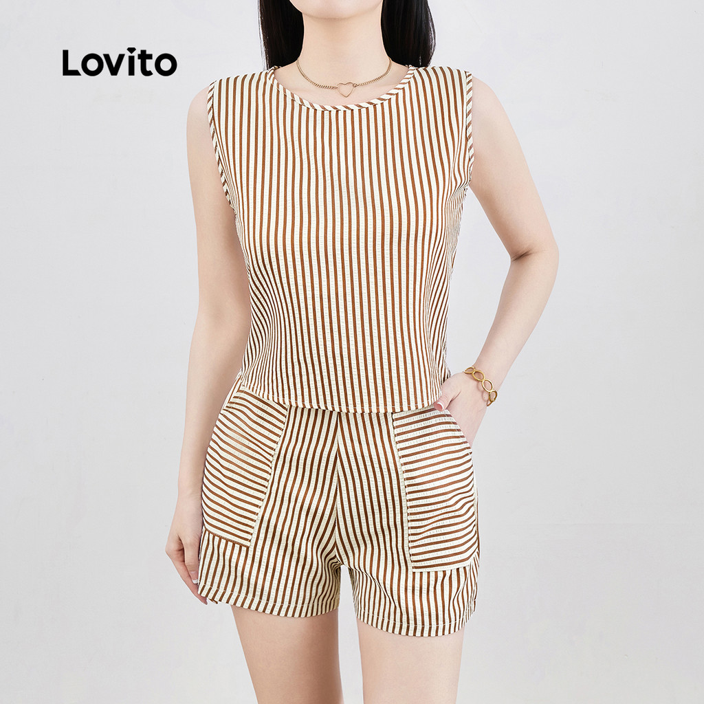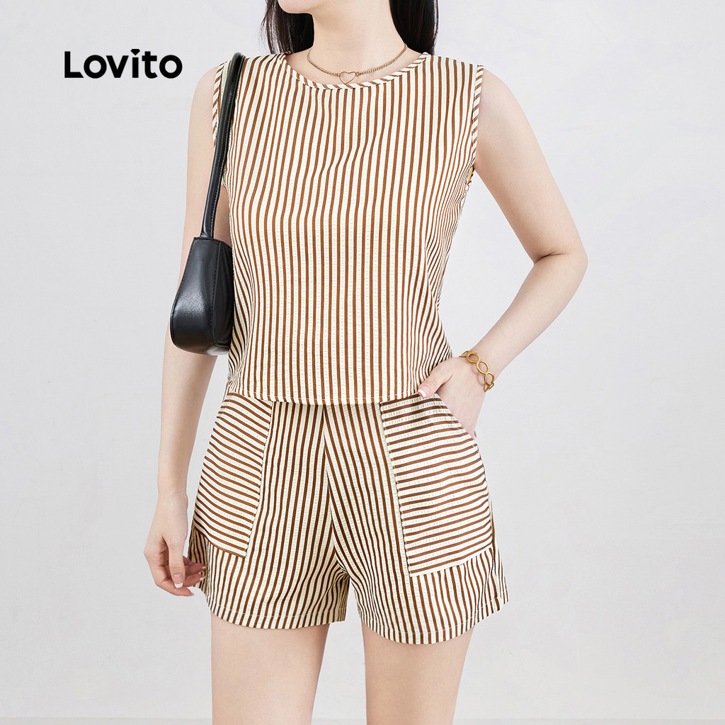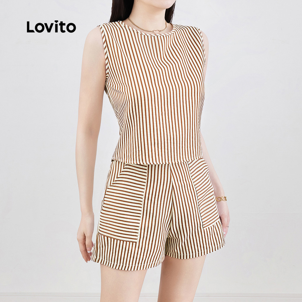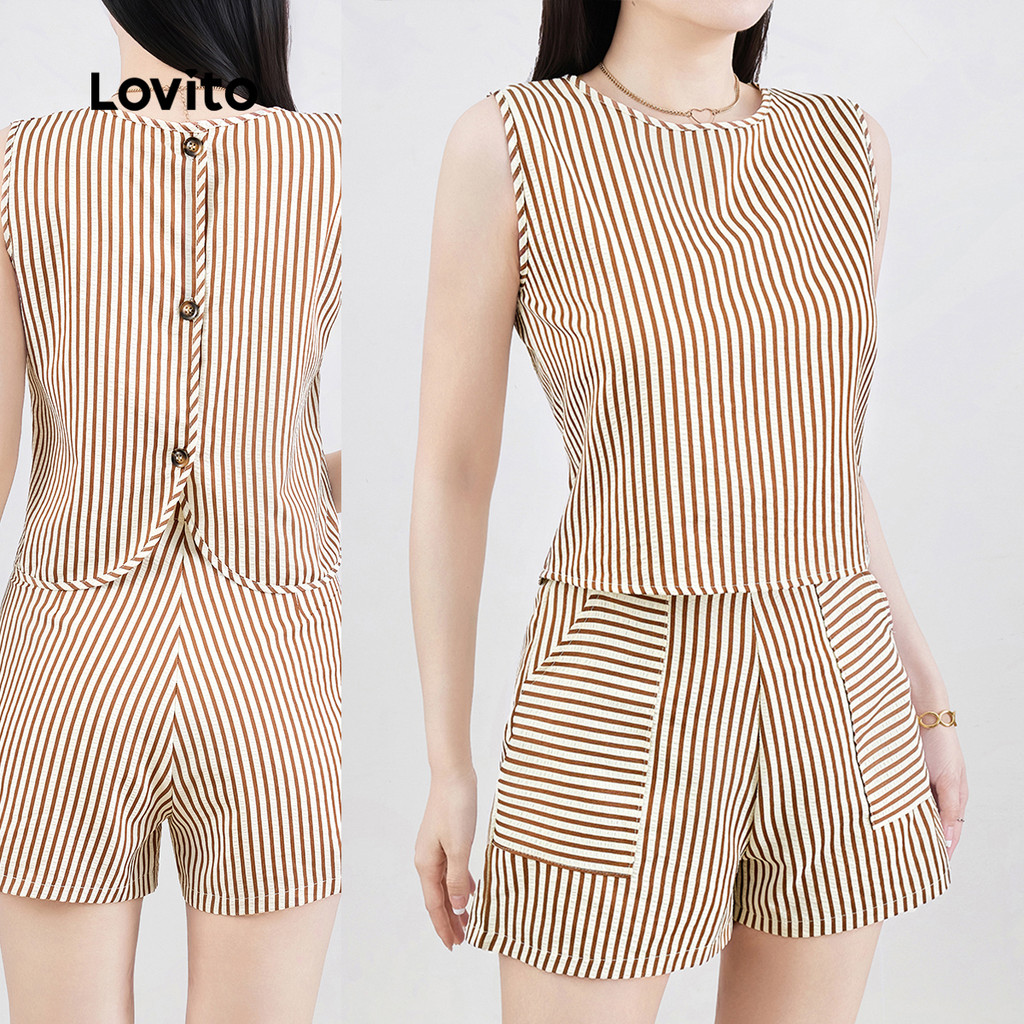 Lovito Conjunto de Shorts Casuais com Bolso Botões Conforto Primavera/verão para Mulheres L143ED056