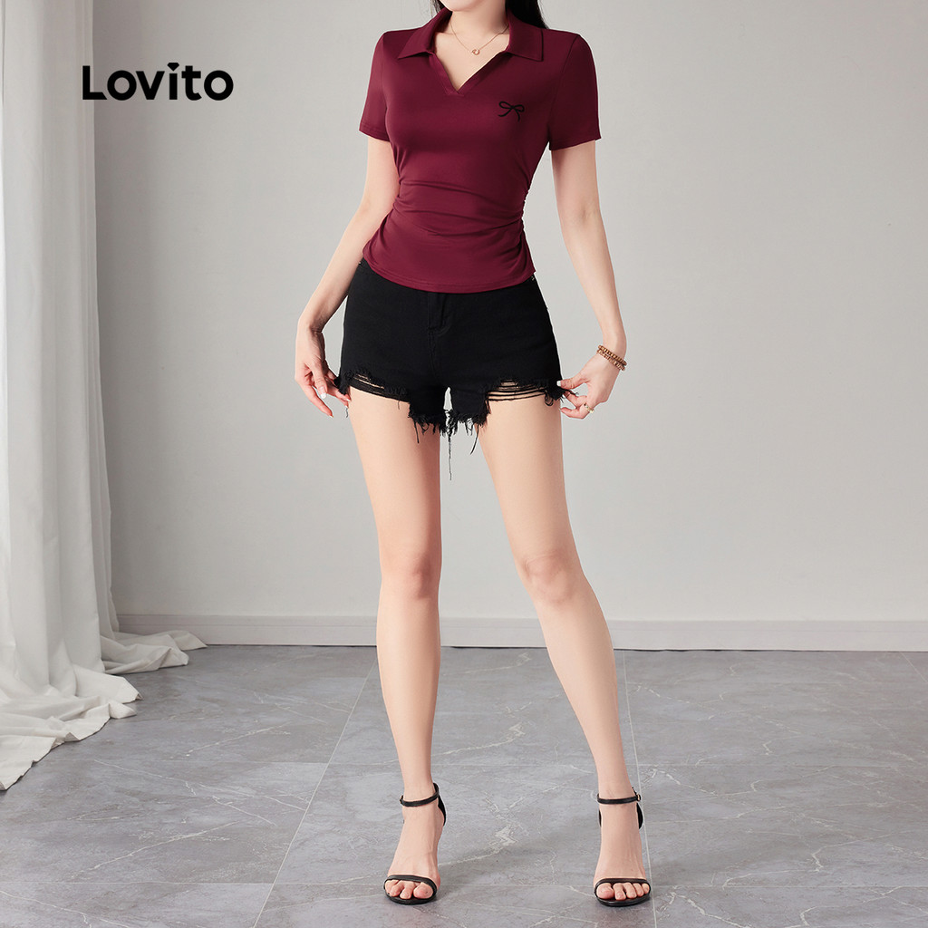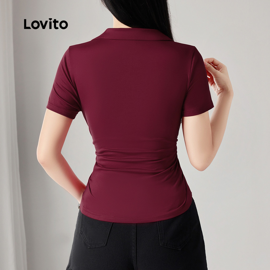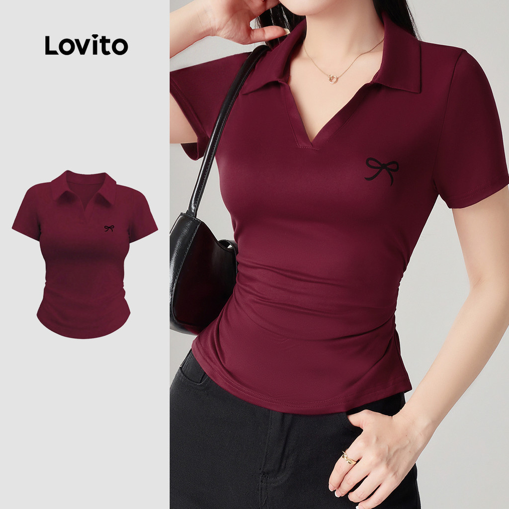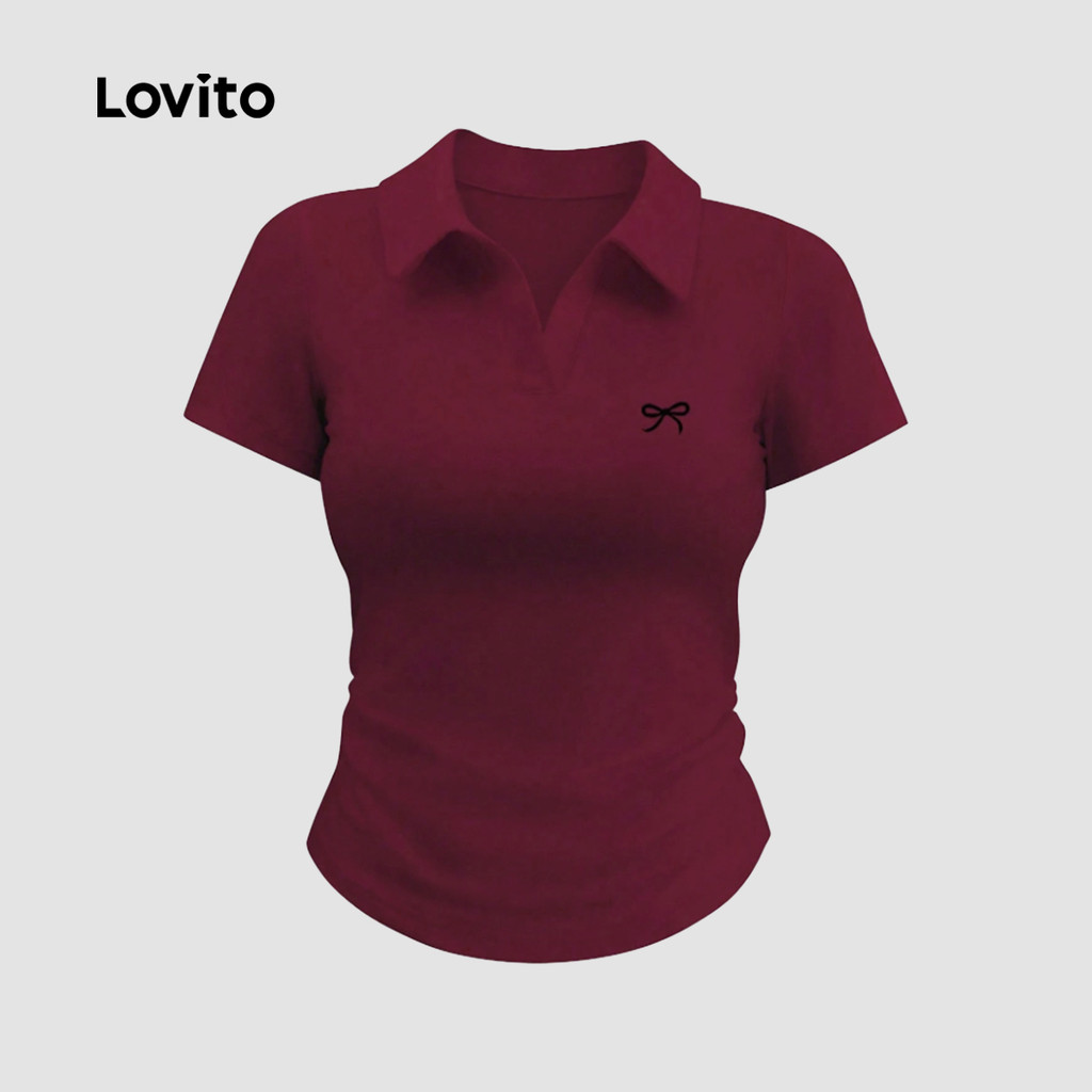 Lovito Camiseta Casual Com Laço Cor Vinho Para Mulheres Ideal Para a Primavera/verão L149ED322