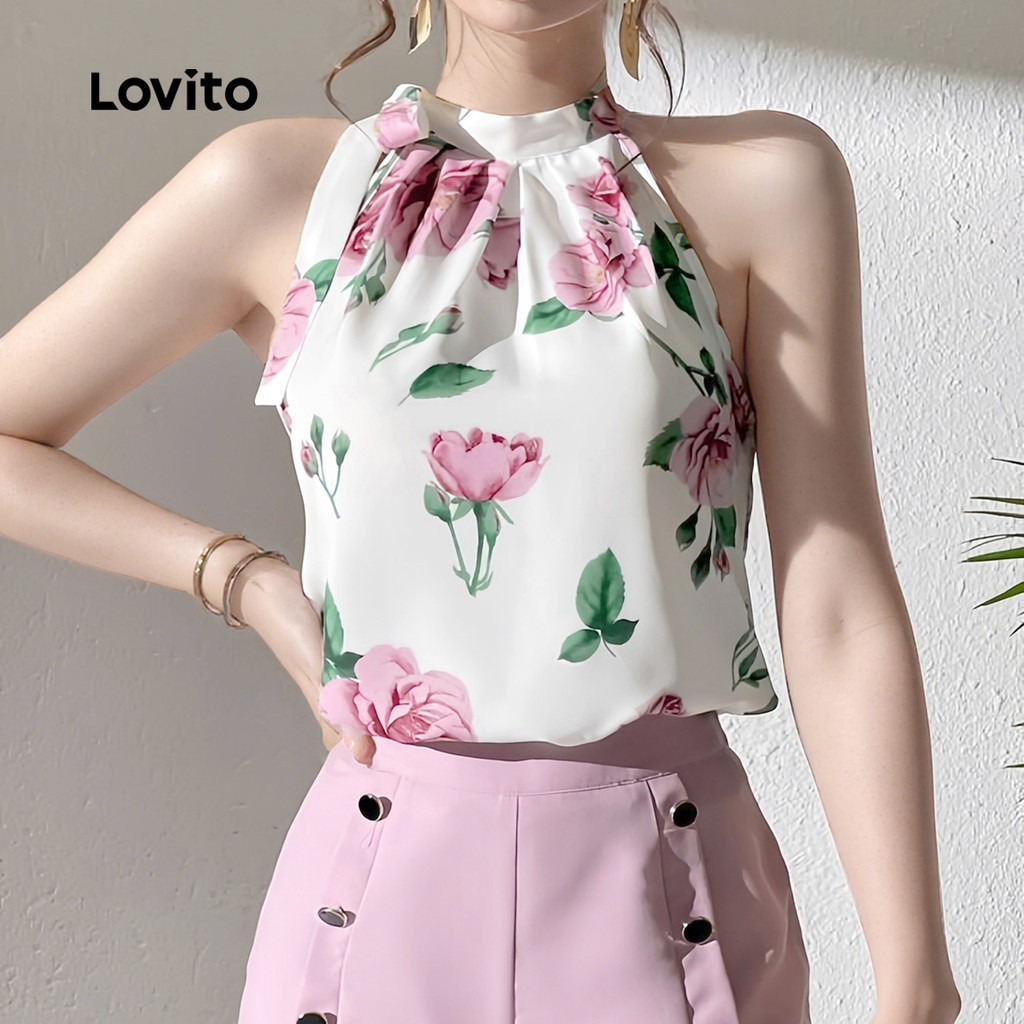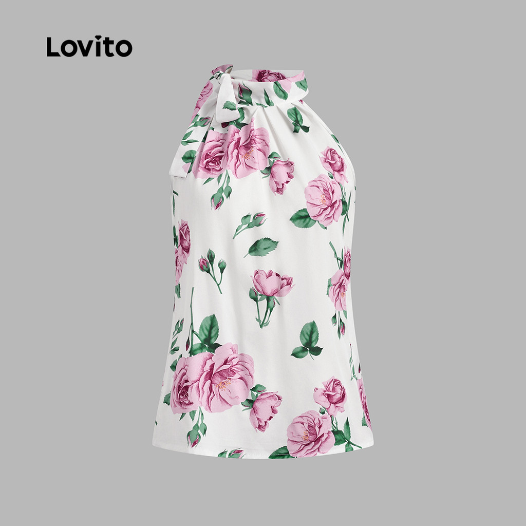 Lovito Blusa Boho com Laço Assimétrica Suave e Confortável Primavera/verão Blusa Branca L137ED397