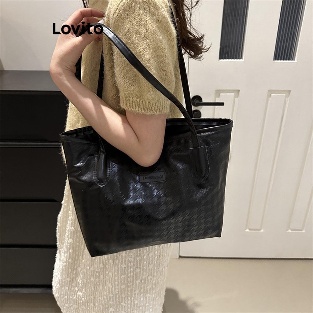 Lovito Bolsa de Ombro Casual Lisa com Estrutura Remendada para Mulheres LFA43710