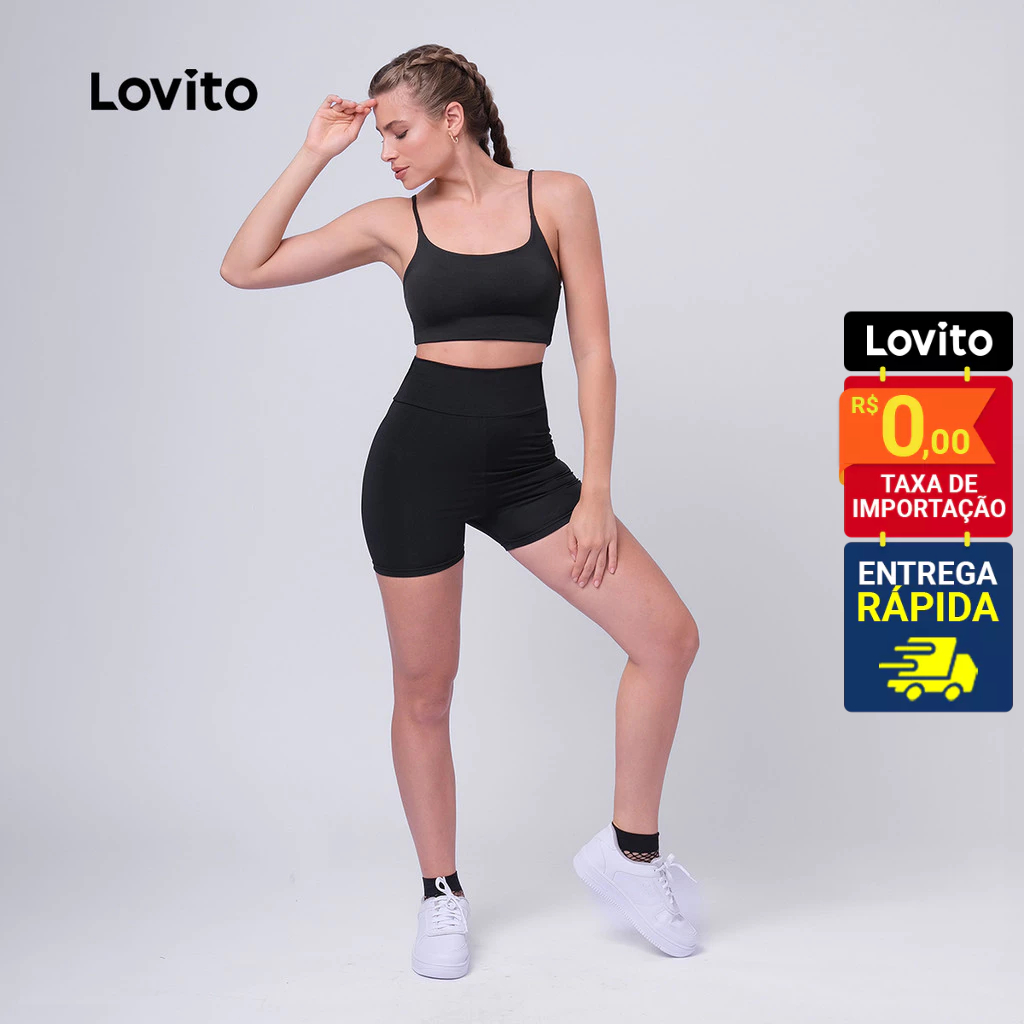 Lovito Shorts Esportivos Feminino Curto com Cintura Alta LB585BRL615