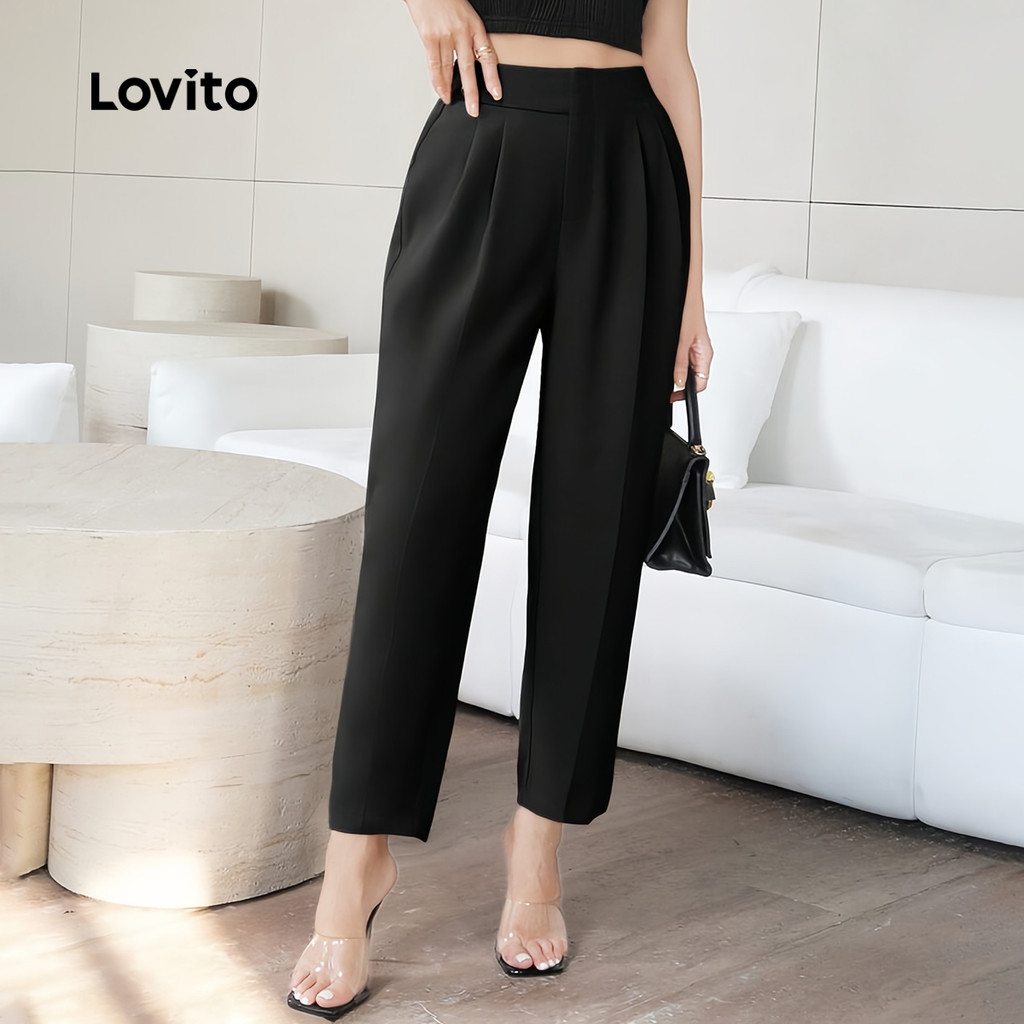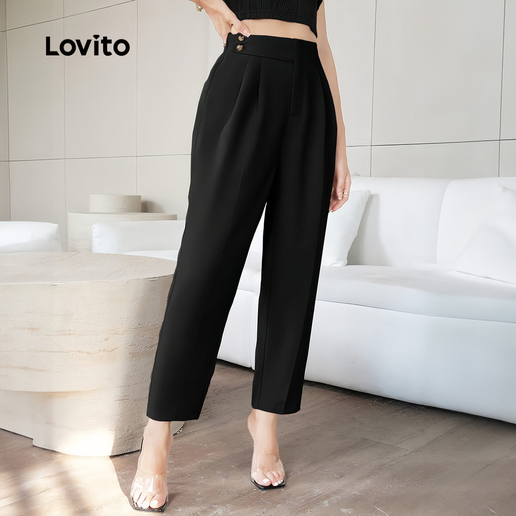 Lovito Calças Casuais Lisas Com Botões, Calças De Verão/primavera Para Mulheres L133ED259