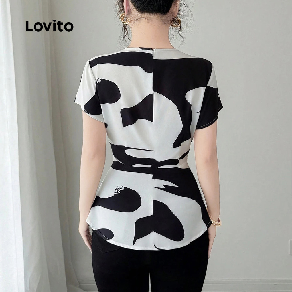 Lovito Blusa Casual Estampa Floral Detalhe De Nó Botões Ideal Festivais Na Primavera/verão Em Preto E Branco L146LD103
