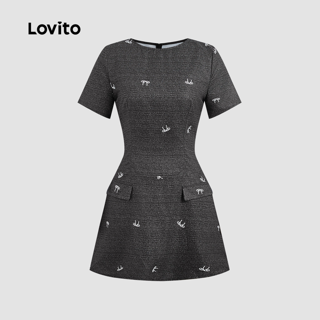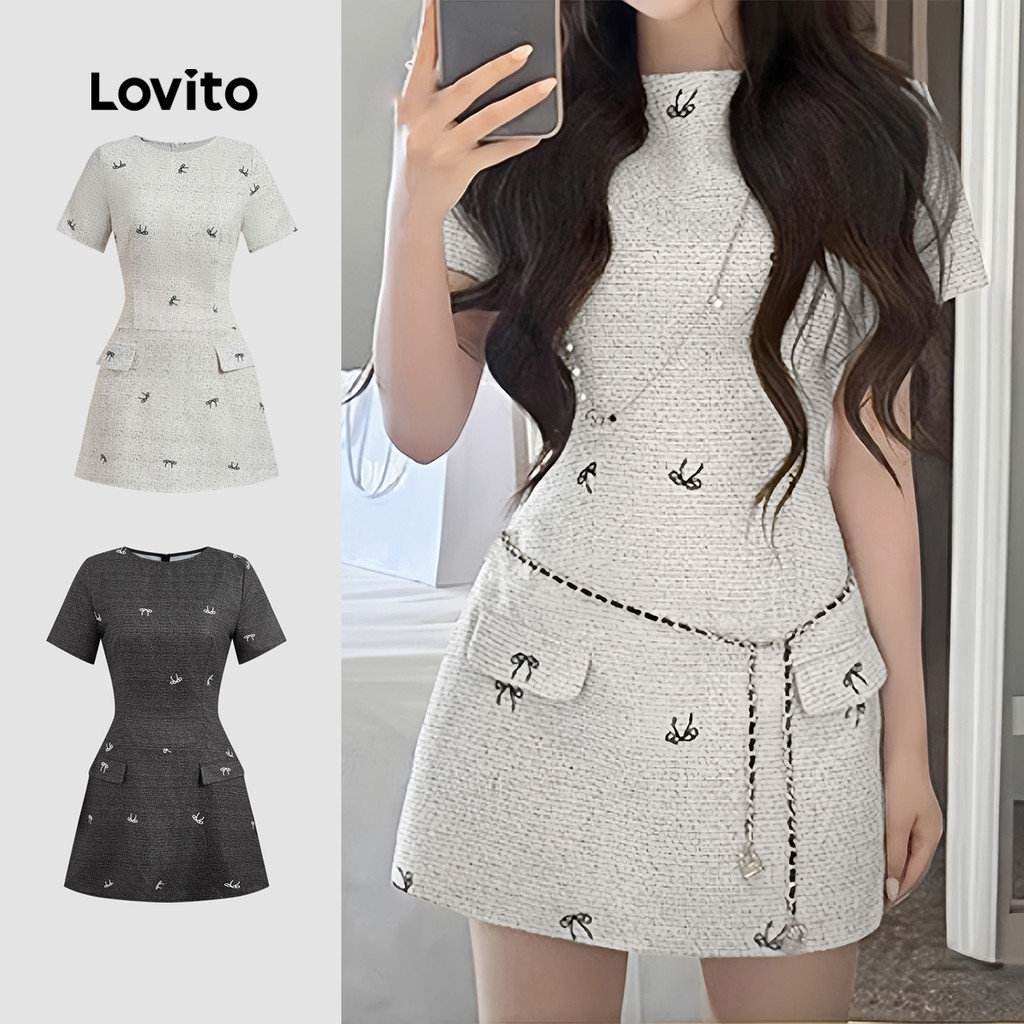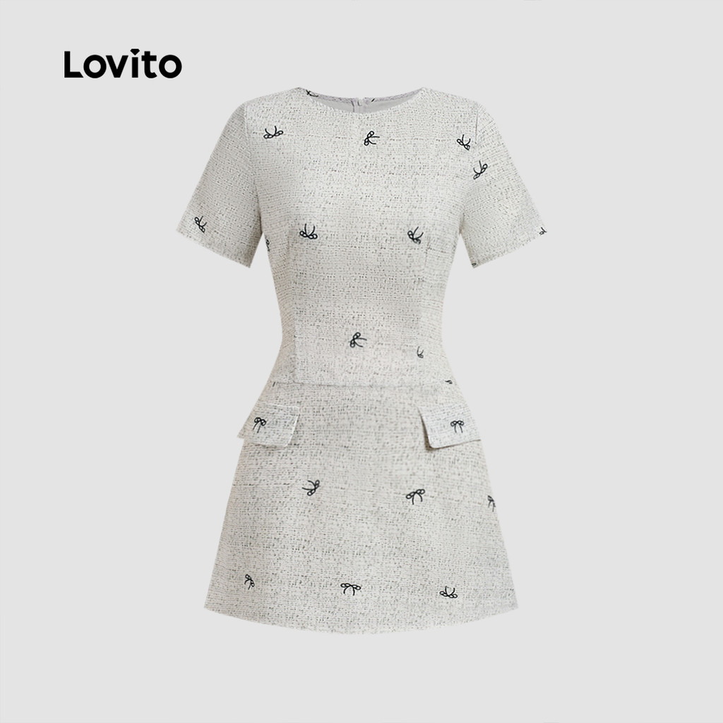 Lovito Vestido Fofo com Laço Primavera/verão Leve Caqui para Mulheres L144AD161