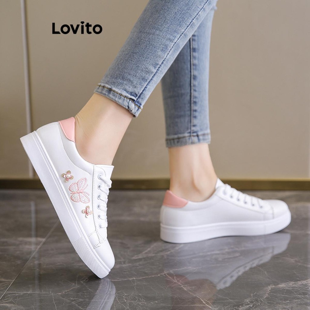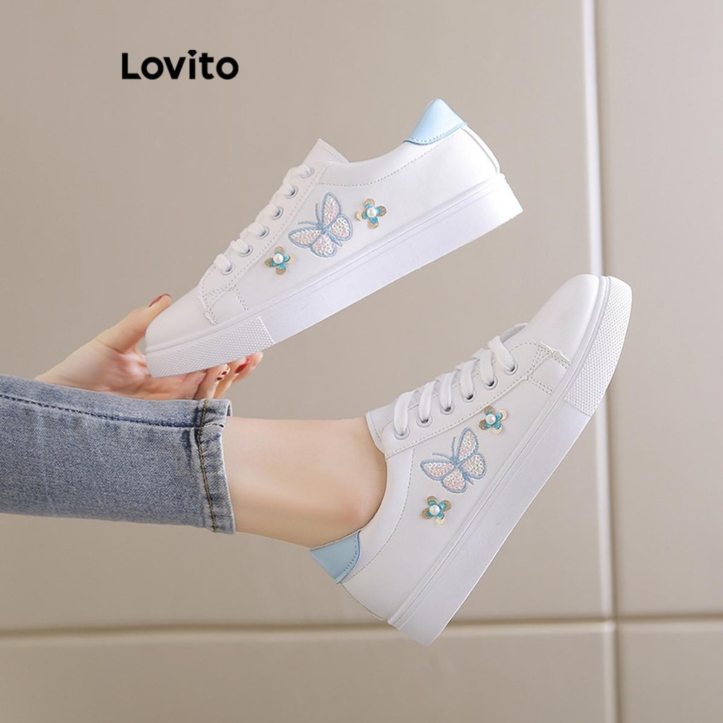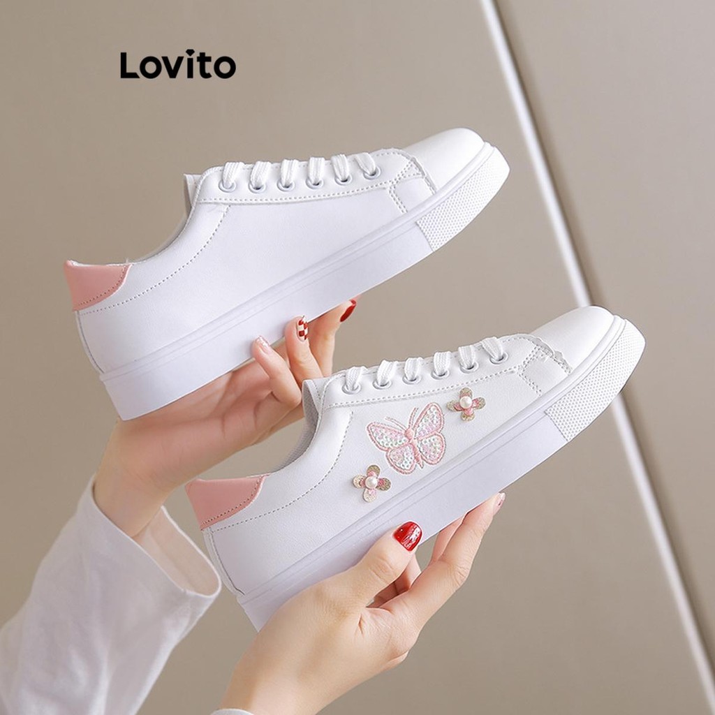 Lovito Tênis Feminino Casual com Estampa de Borboleta e Colorblock Antiderrapante e Sola Macia LFA45502