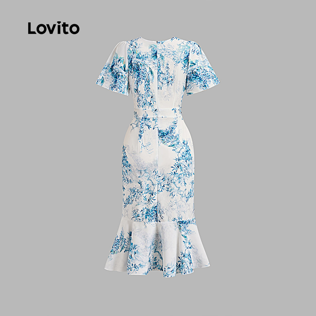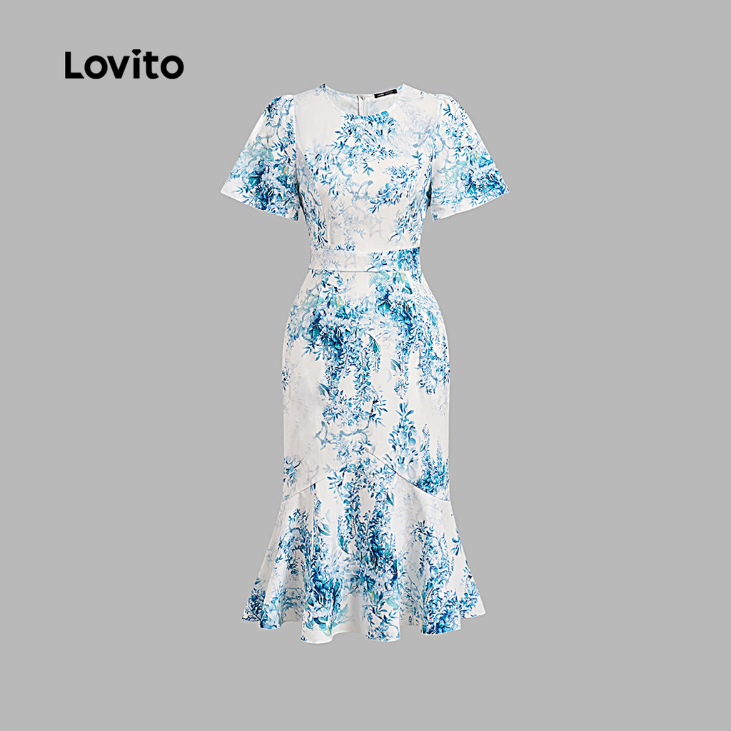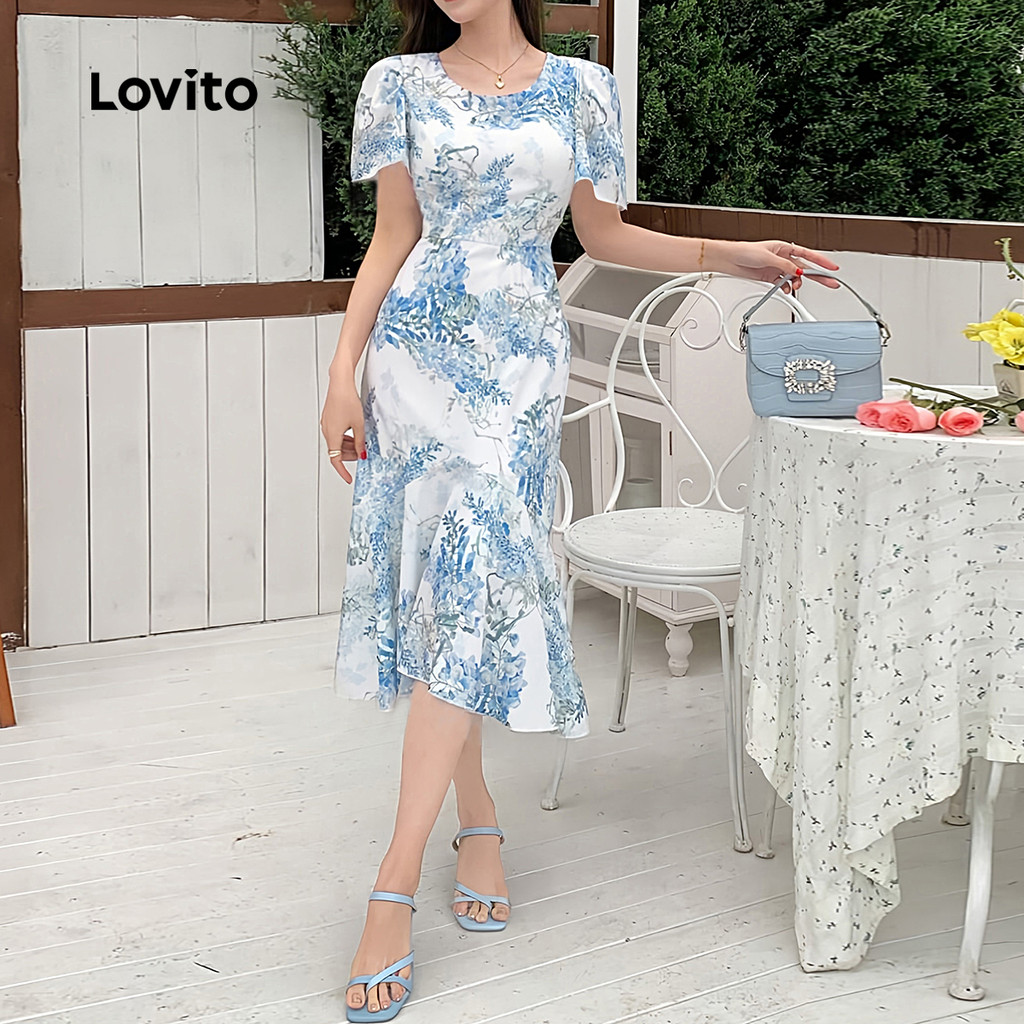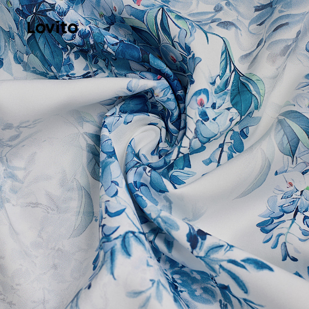 Lovito Vestido Boho Com Babados E Zíper Macio E Confortável Vestido Azul Primavera/verão Para Mulheres L137ED283