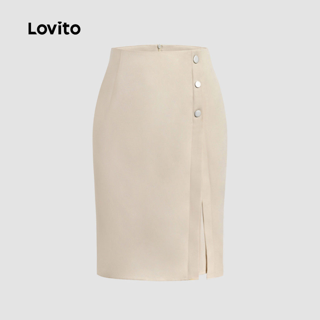 (Trendy) Lovito Saias Elegantes Com Botões Lisos Para Mulheres L133ED743