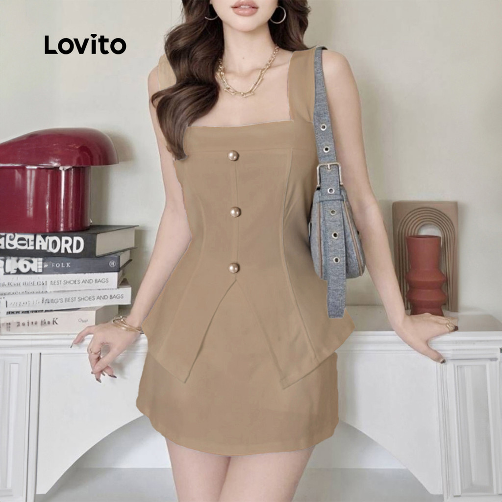Lovito Conjunto Elegante De Blusas E Calças Dia a Dia Clássico Versátil Botões Frontais Primavera/verão Mulher L149ED356