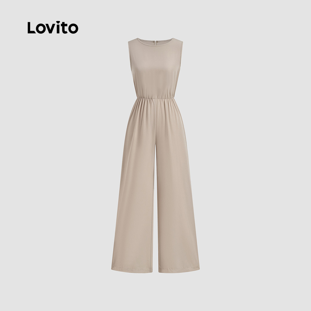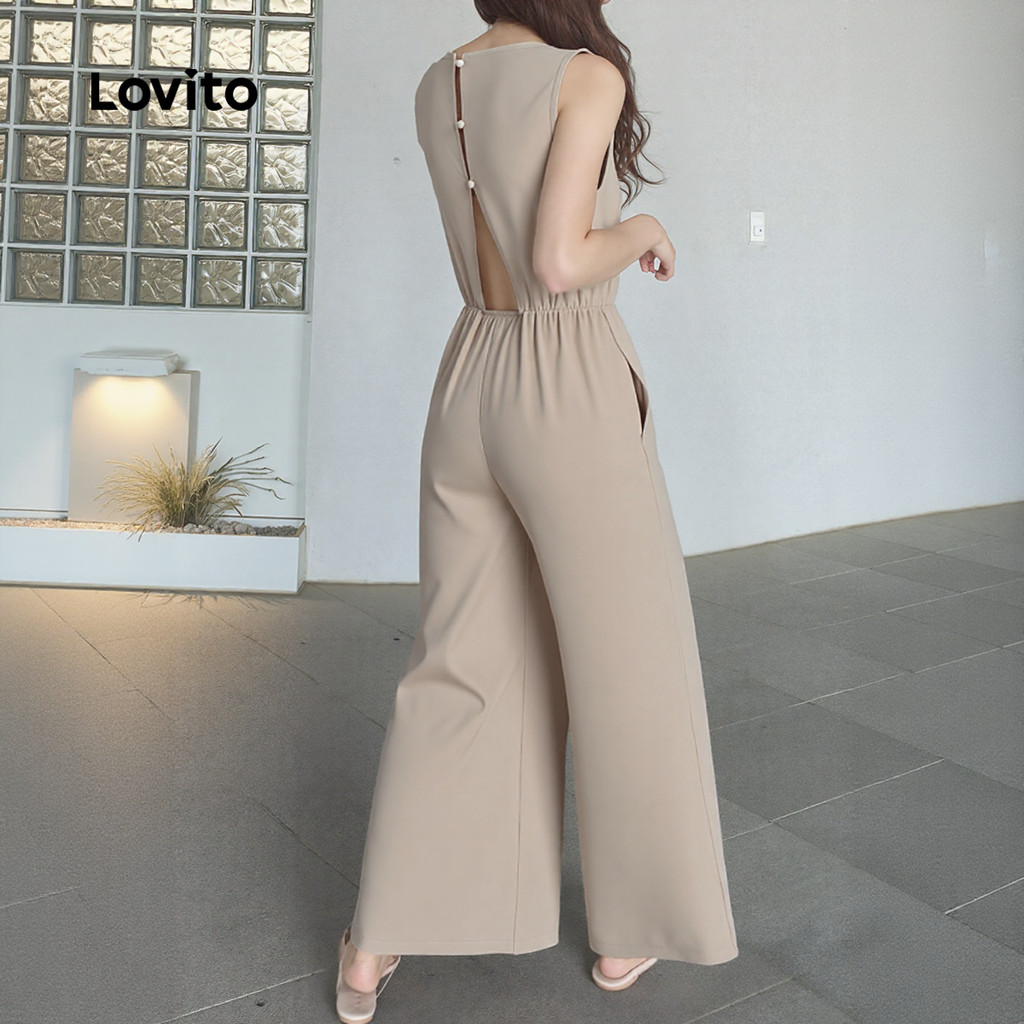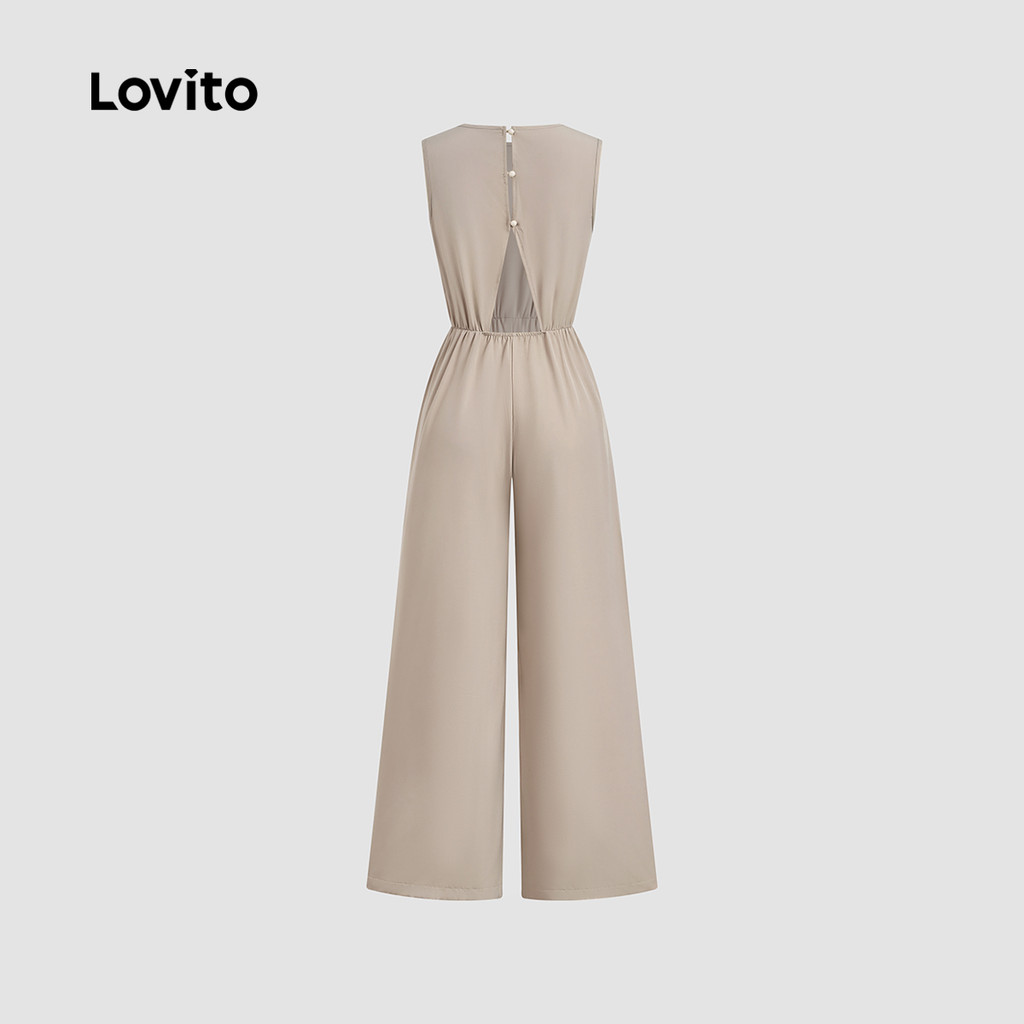 Lovito Macacão Casual Sem Costas Primavera/verão em Caqui Claro para Mulheres L155ED1464
