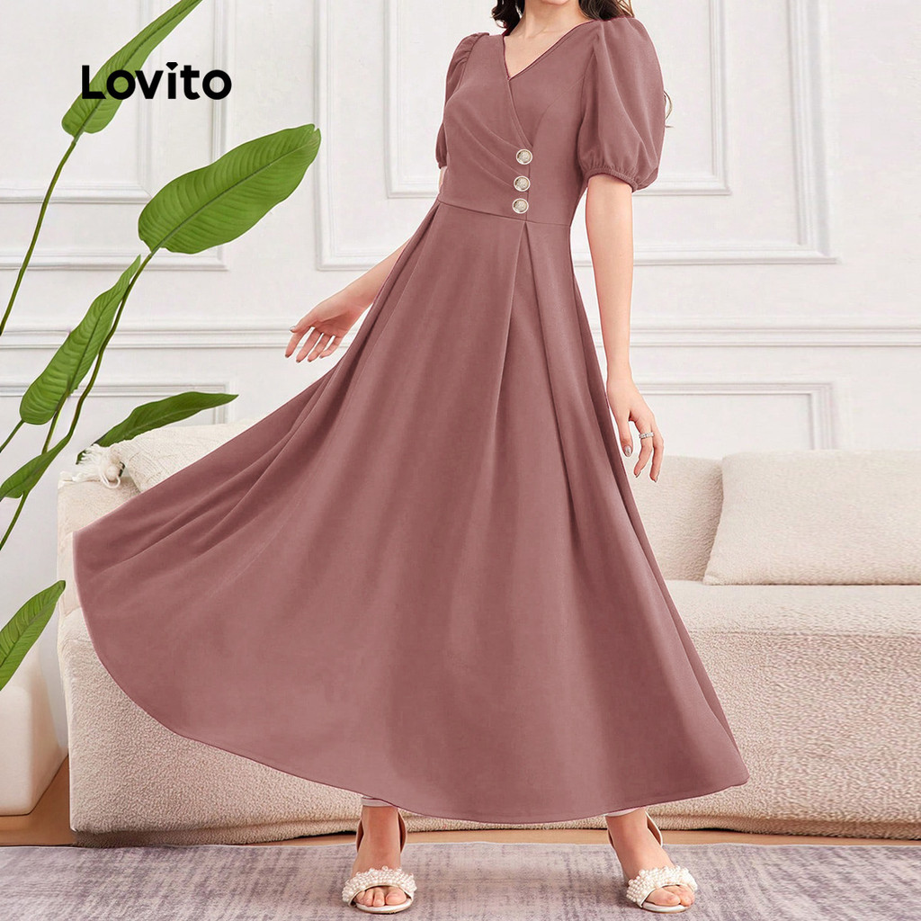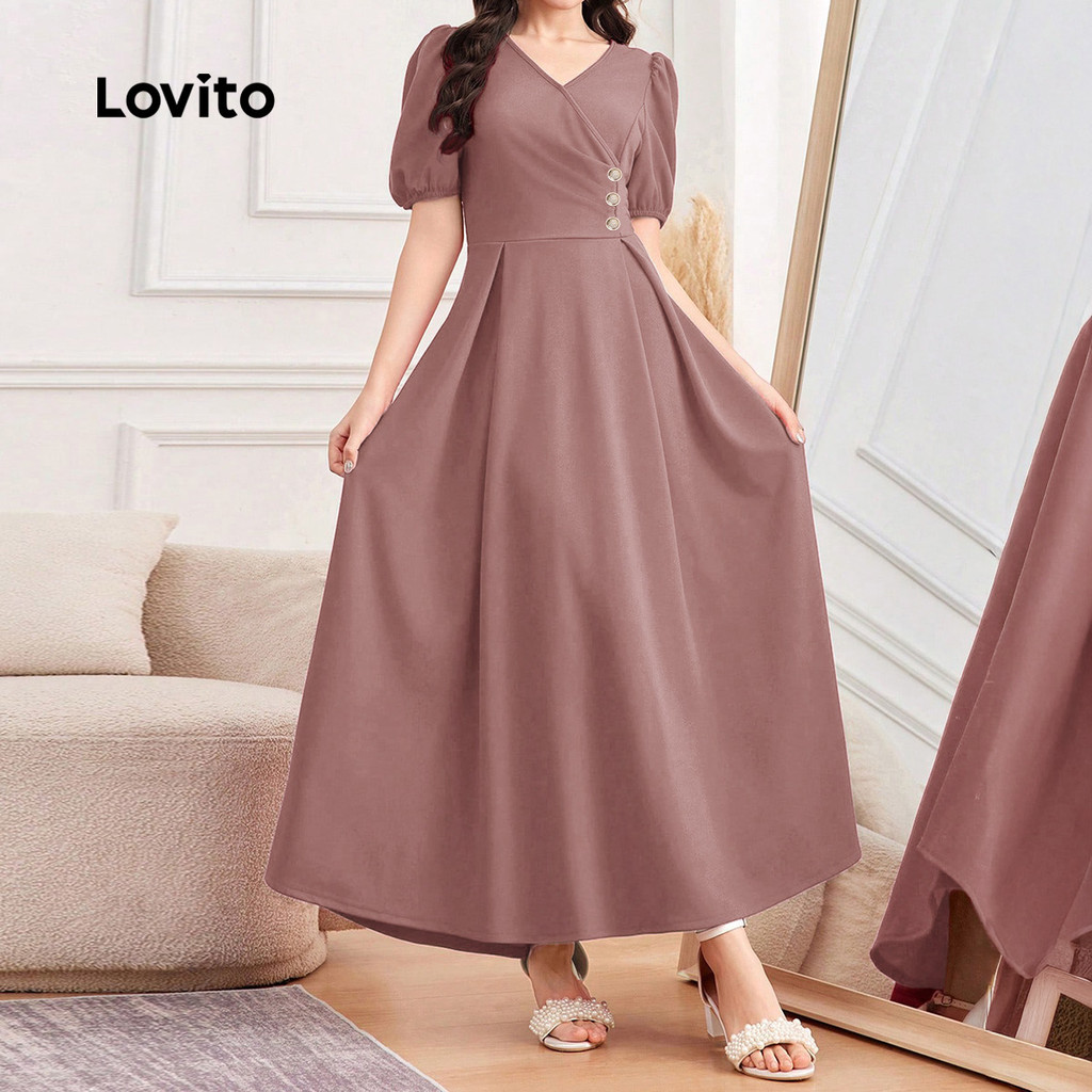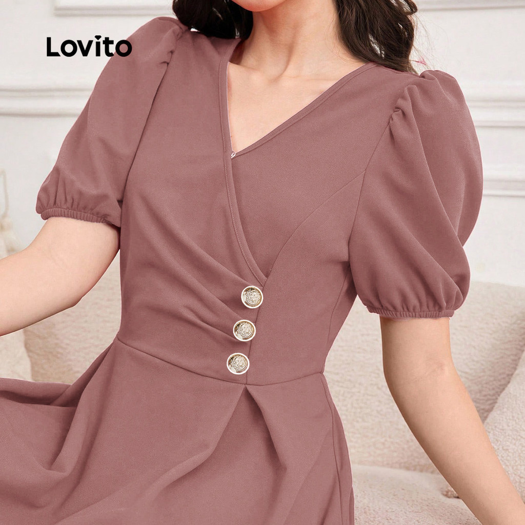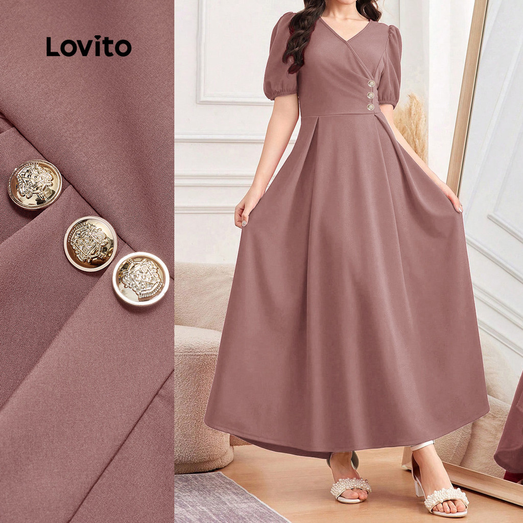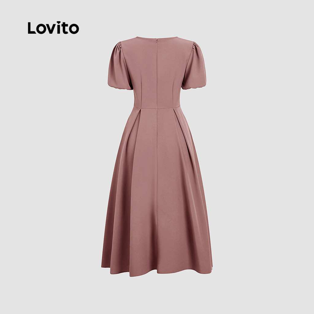 Lovito Vestido Elegante Vestido Feminino Primavera/verão Marrom com Fivela Metálica Plissada L164ED052