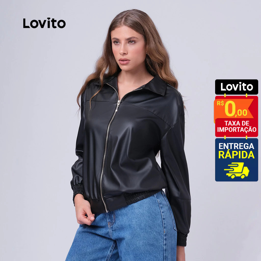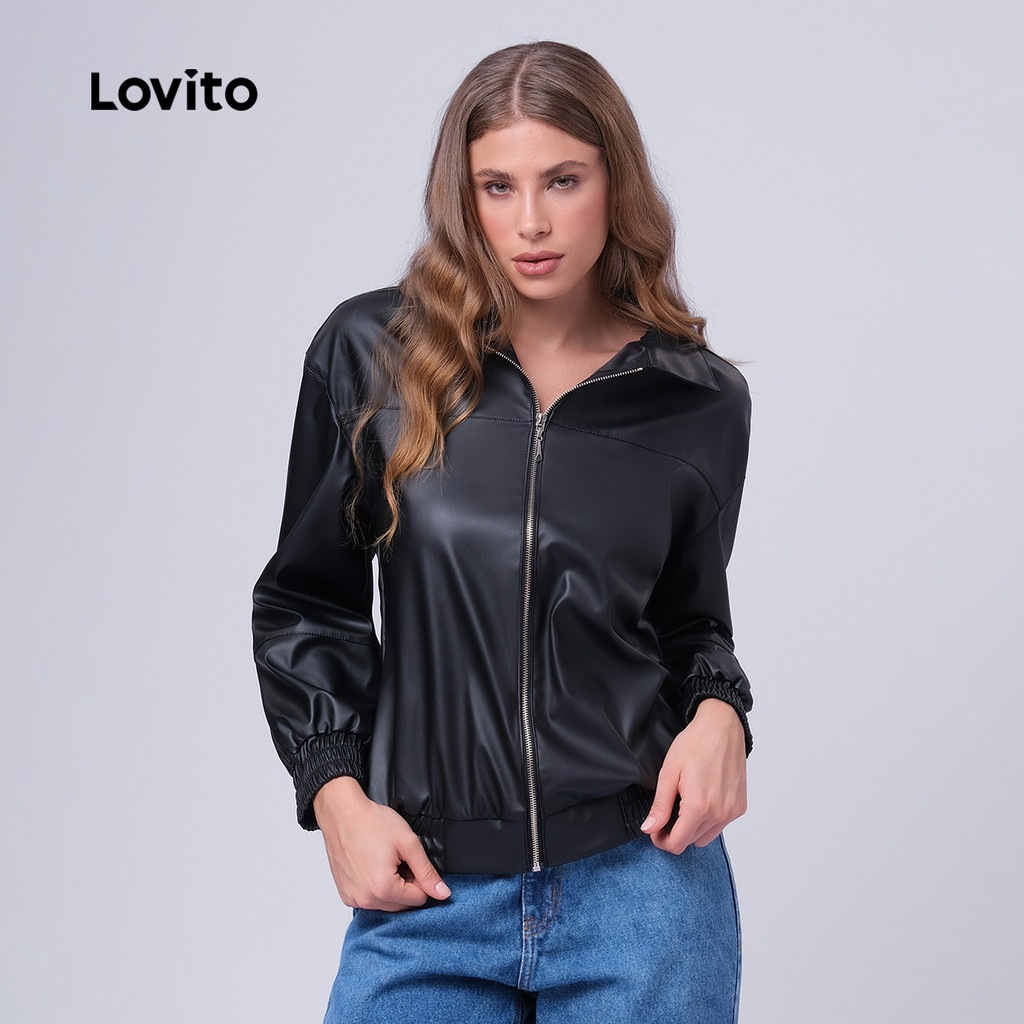 Lovito Jaqueta Feminina PU com Zíper LB444BRL473