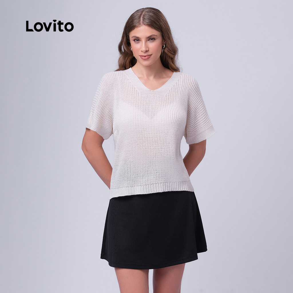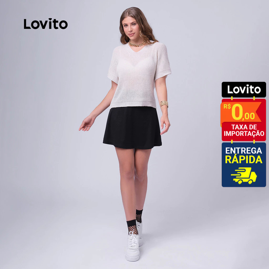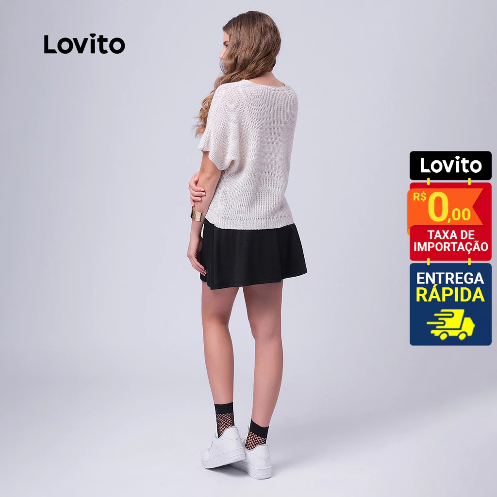 Lovito Top de Tricô Feminino Manga Curta Casual Básico LB468BRL497