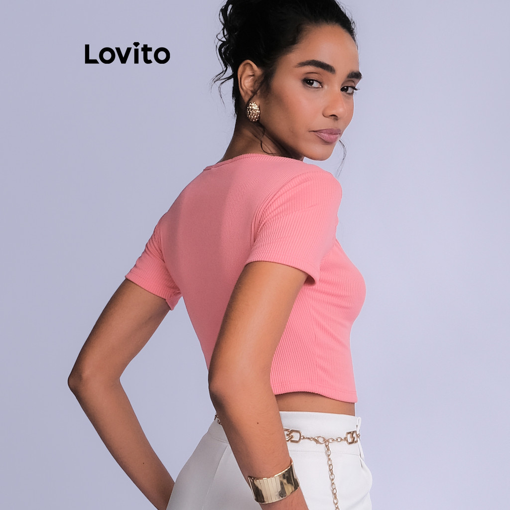 Lovito Top Croped com Recorte Manga Curta Básico Feminino LB1096BRL1126