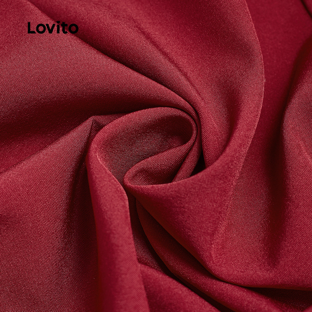 Lovito Vestido Elegante De Corte Estruturado Dia a Dia Na Cor Vinho Para Mulheres Primavera/verão L150ED347