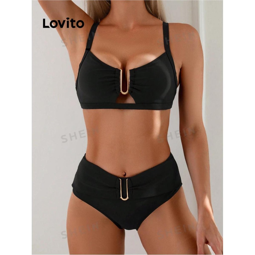 Lovito Biquíni Feminino Sexy com Acabamento Metálico Liso LNL81009