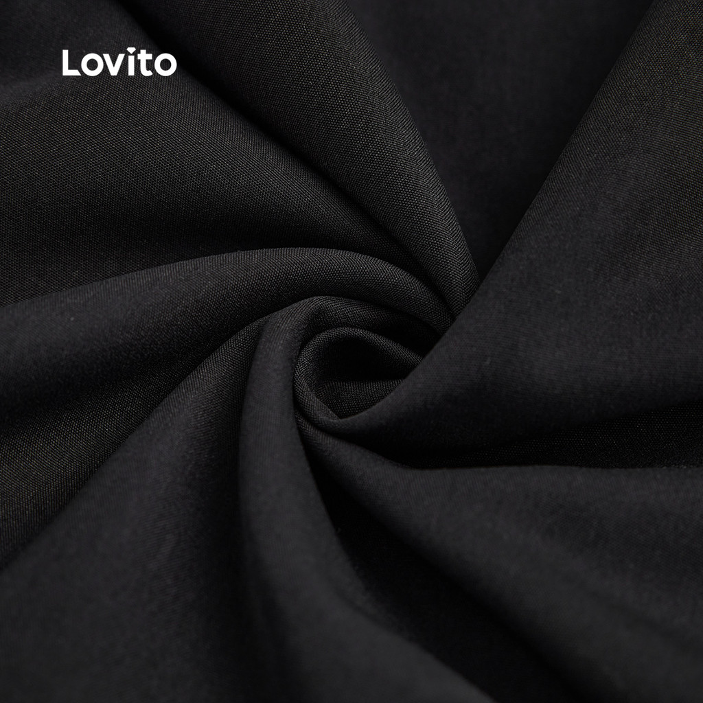Lovito Vestido Elegante Minimalista Primavera/verão Preto para Mulheres L143ED418