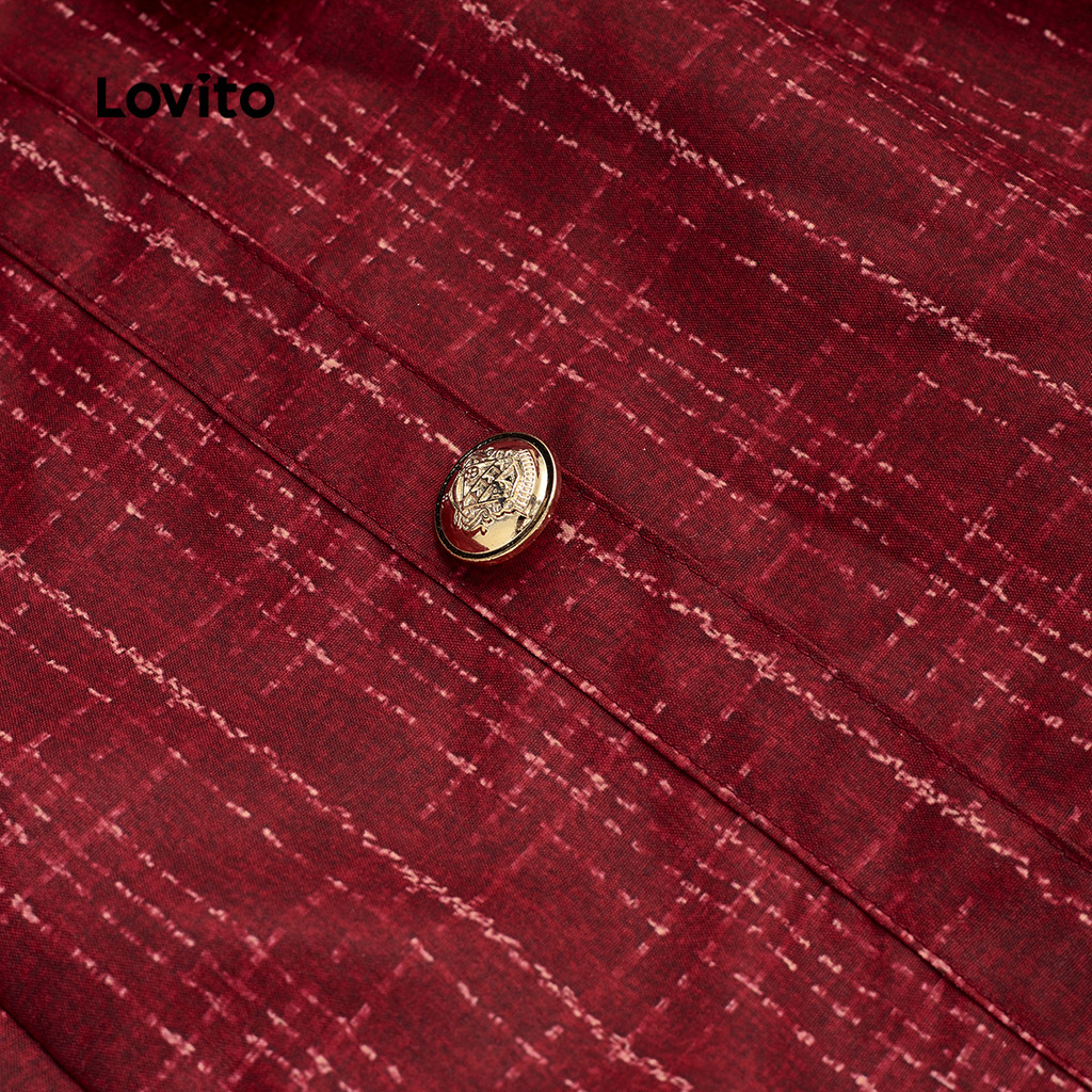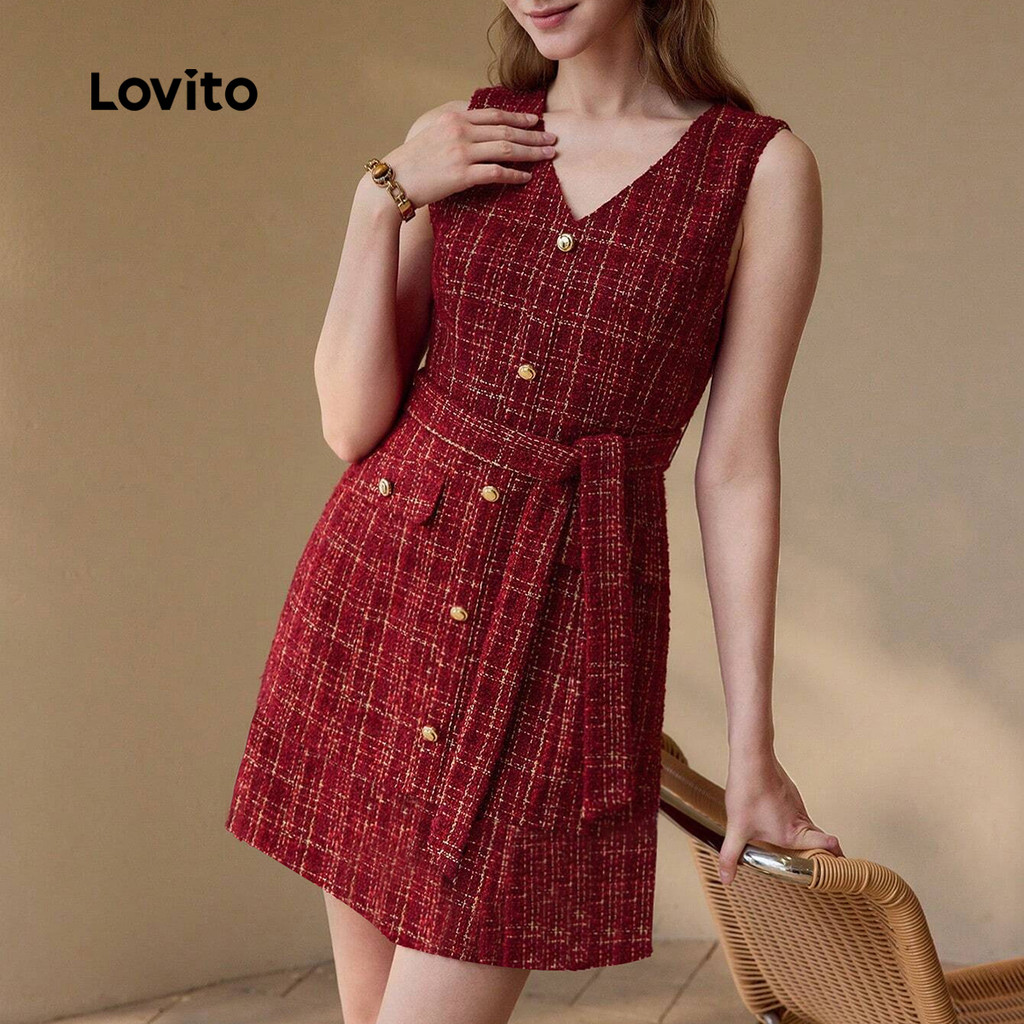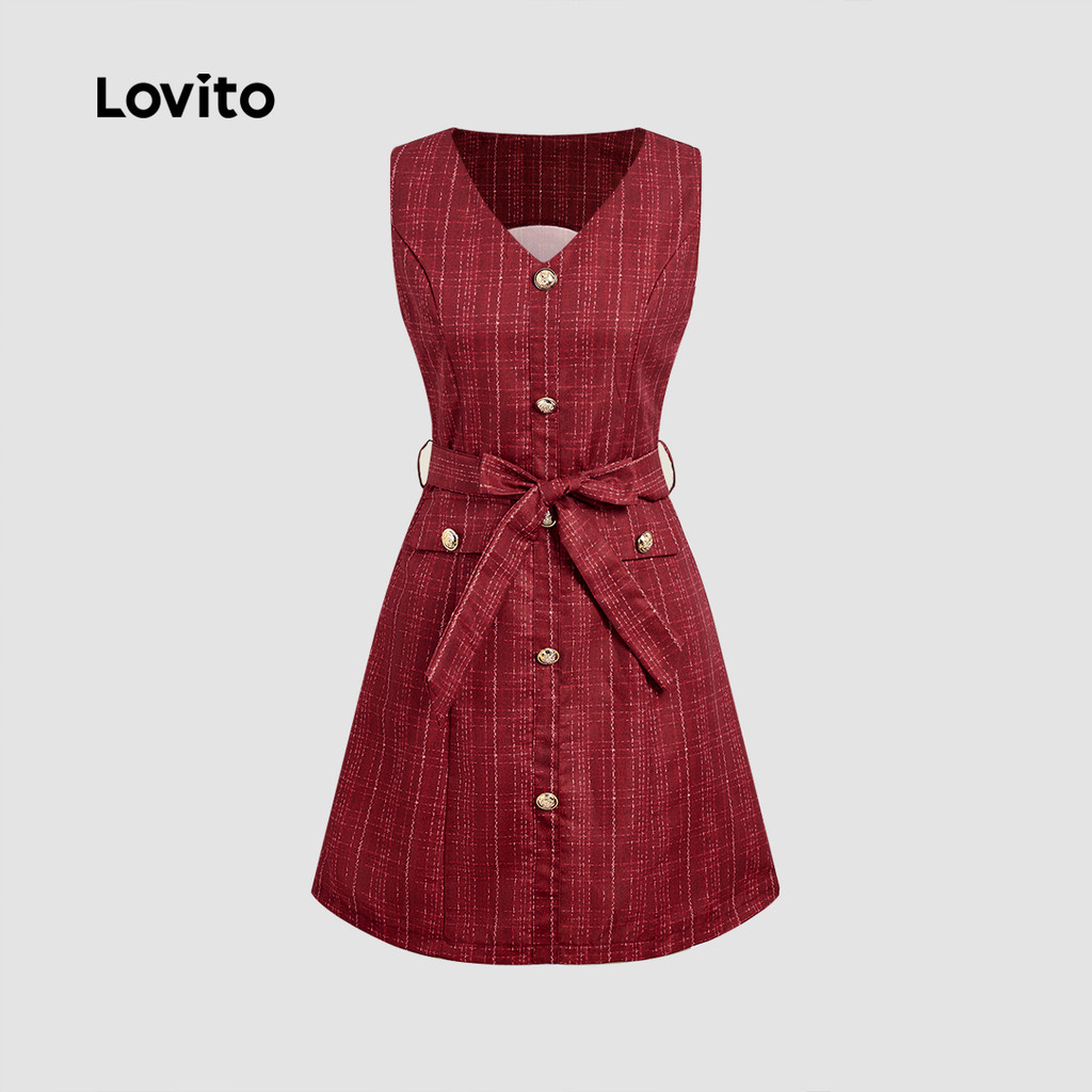 (NEW) Lovito Vestido Elegante com Cinto Primavera/verão Vermelho para mulheres LBL29340