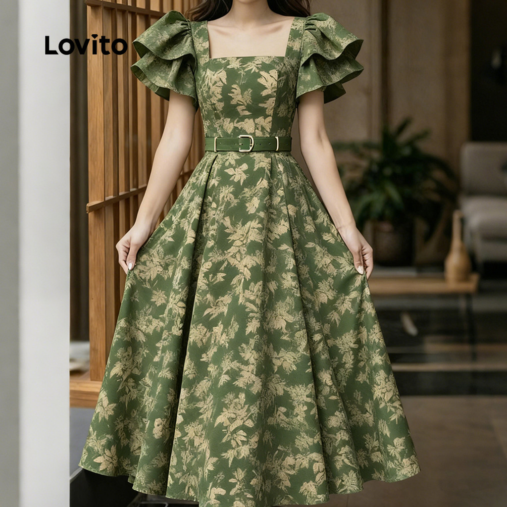 Lovito Vestido Elegante De Festa Com Flores E Babados Para Primavera/verão LK2EDD123