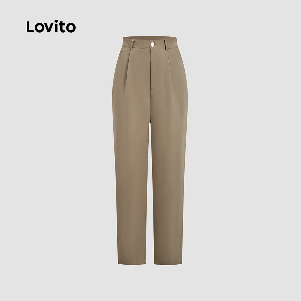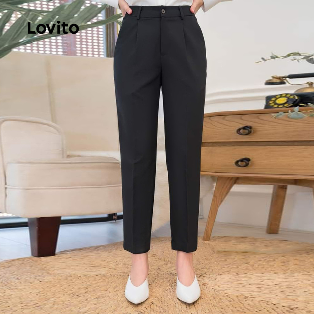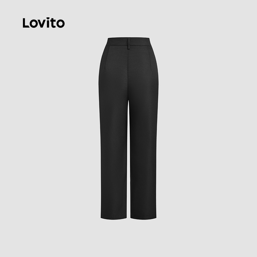 (New) Lovito Calças Elegantes com Botão Zíper Primavera/verão Calças Pretas para Mulheres L142LD264