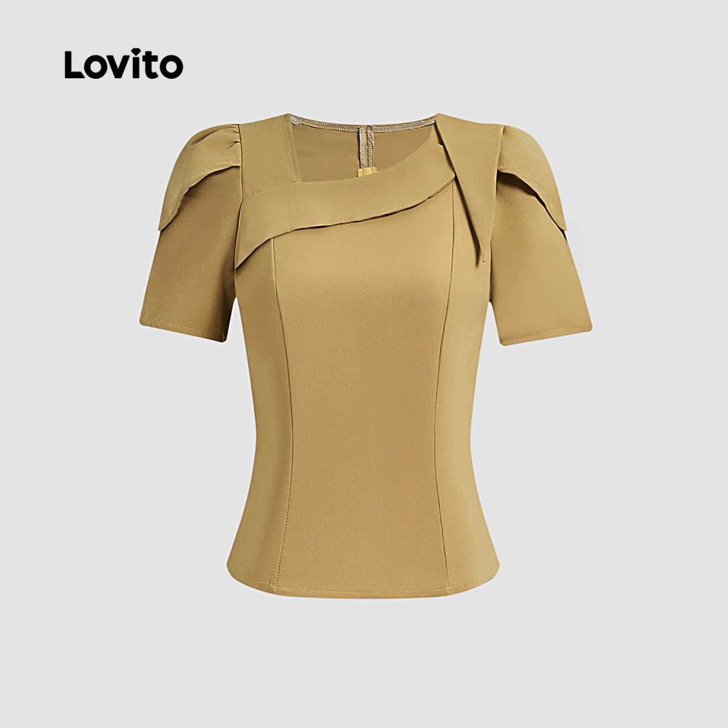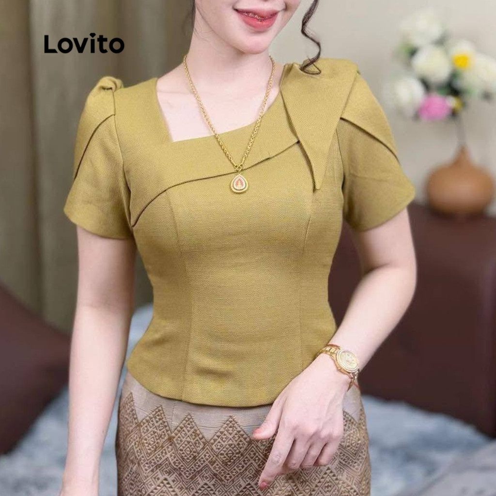 Lovito Blusa Casual Assimétrica Primavera/verão Blusa Amarela para Mulheres L149ED660