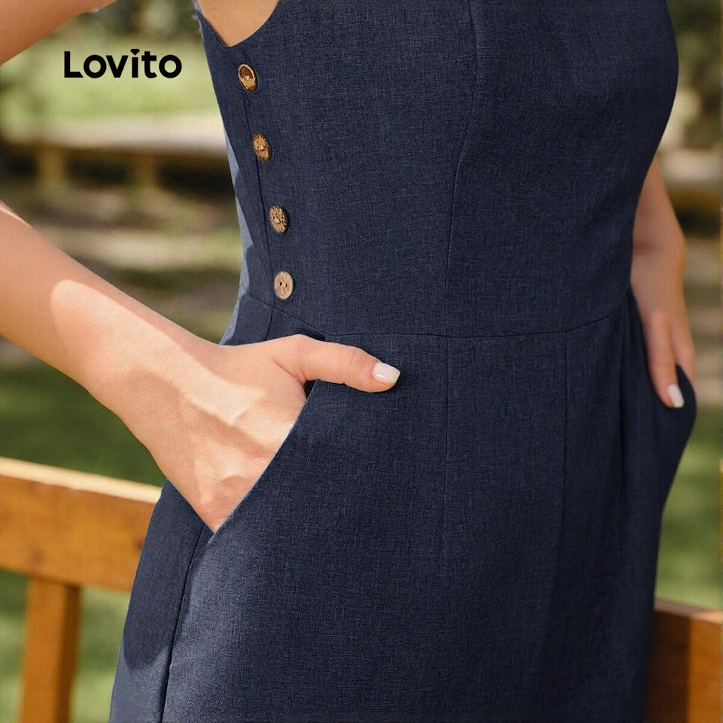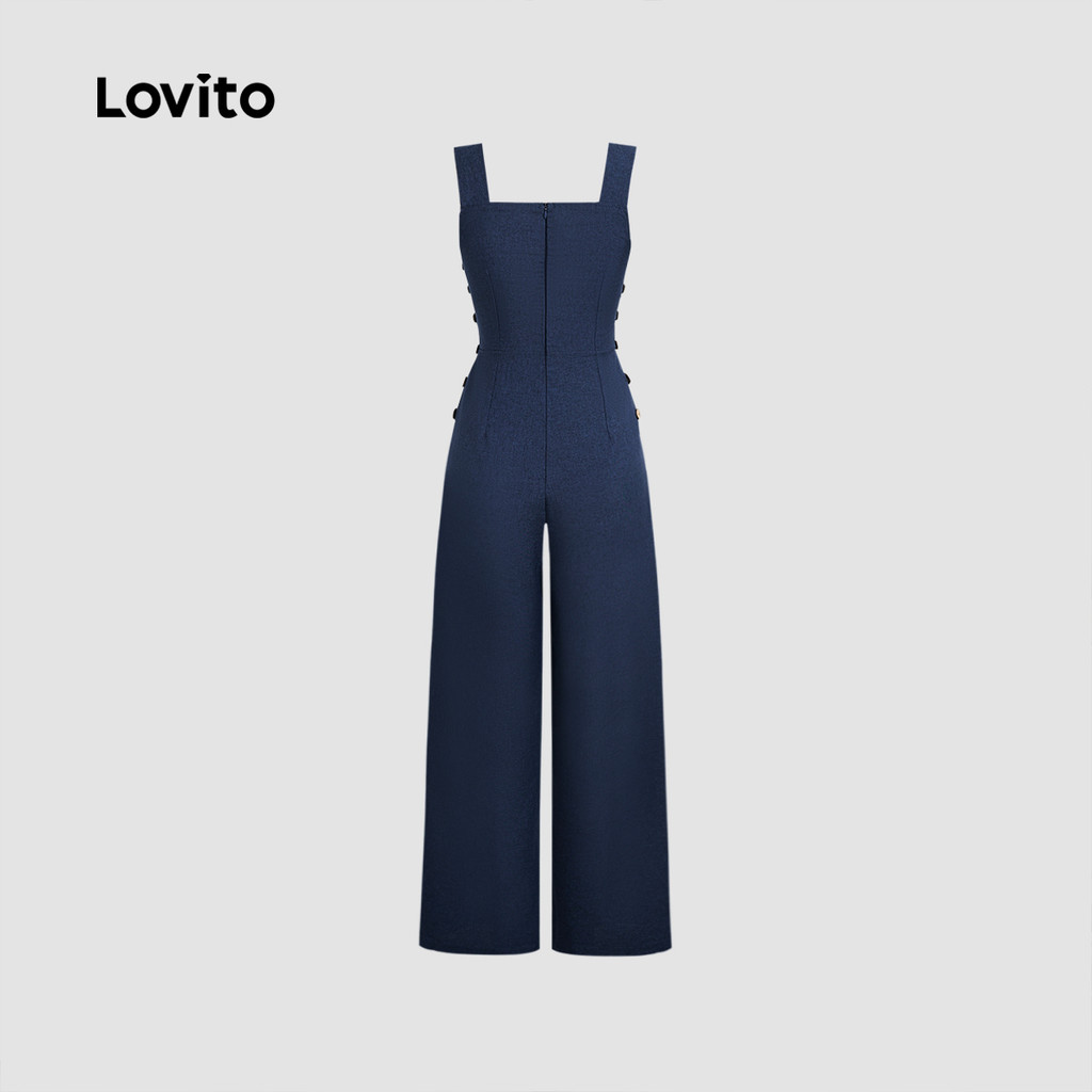 Lovito Macacão Casual de Botões com Linha de Estrutura para Primavera/verão Macacão azul-marinho L155AD1555
