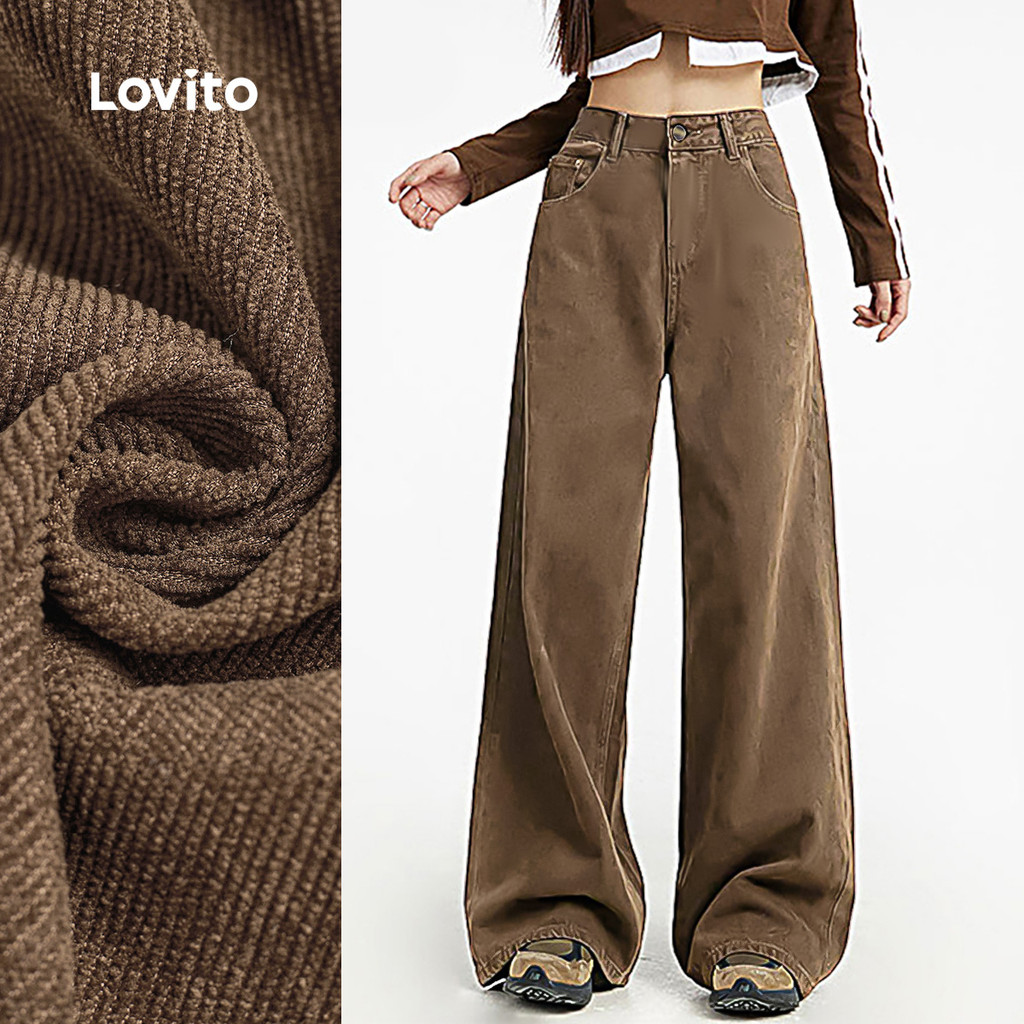 Lovito Calças Casuais com Zíper e Bolso Primavera/verão Calças Marrom para Mulheres LBL26273