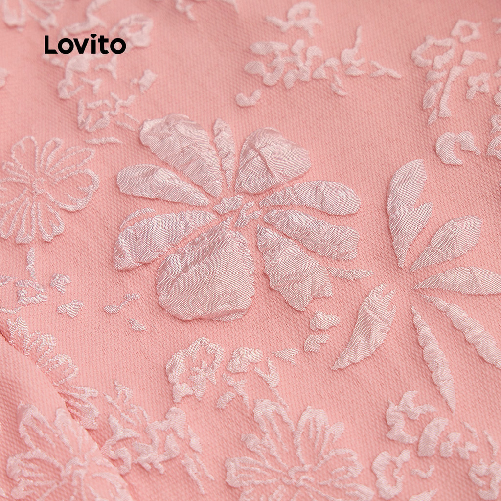 Lovito Blusa Elegante de Jacquard com Laço Nas Costas Amarrada de Primavera/verão Rosa para mulheres L143ED406