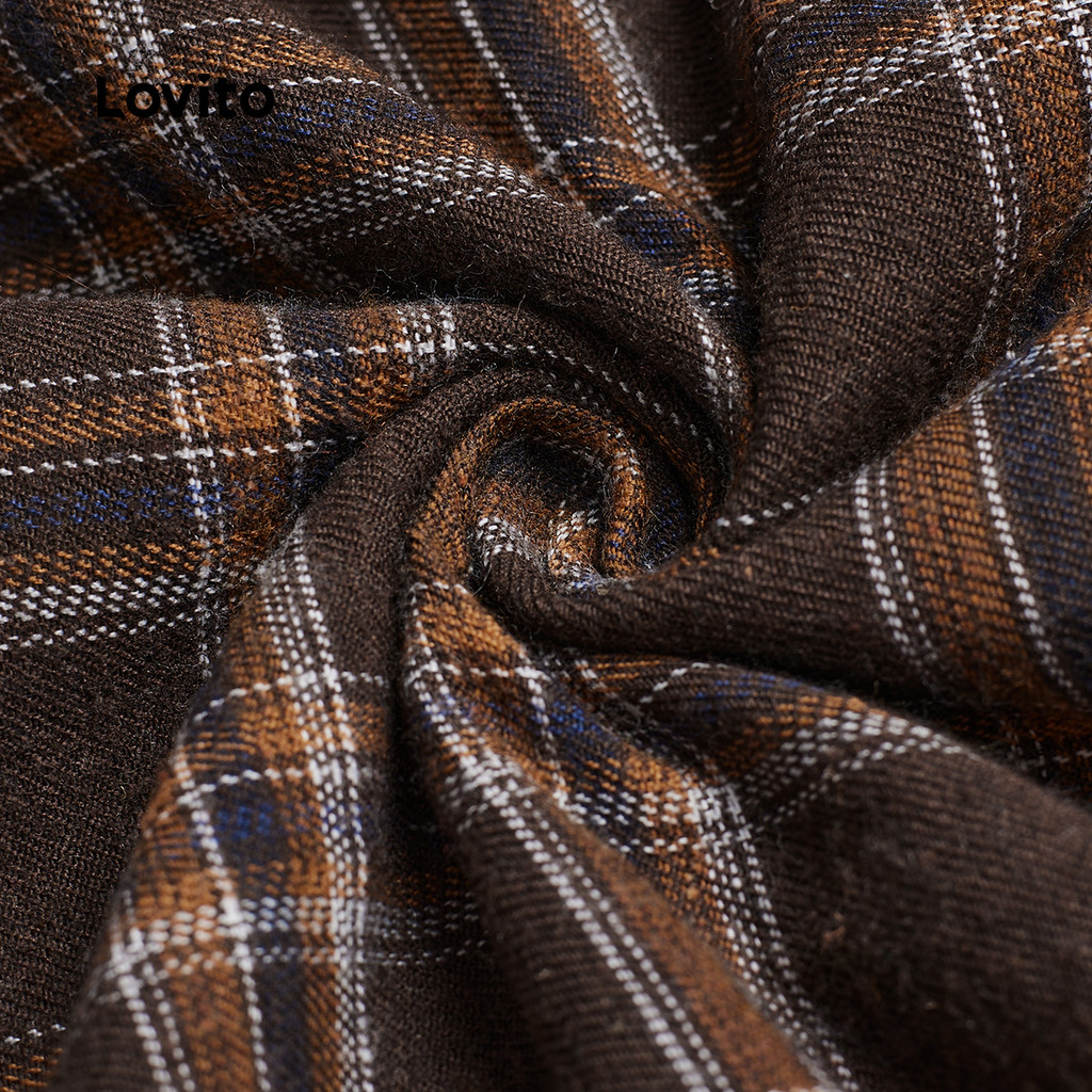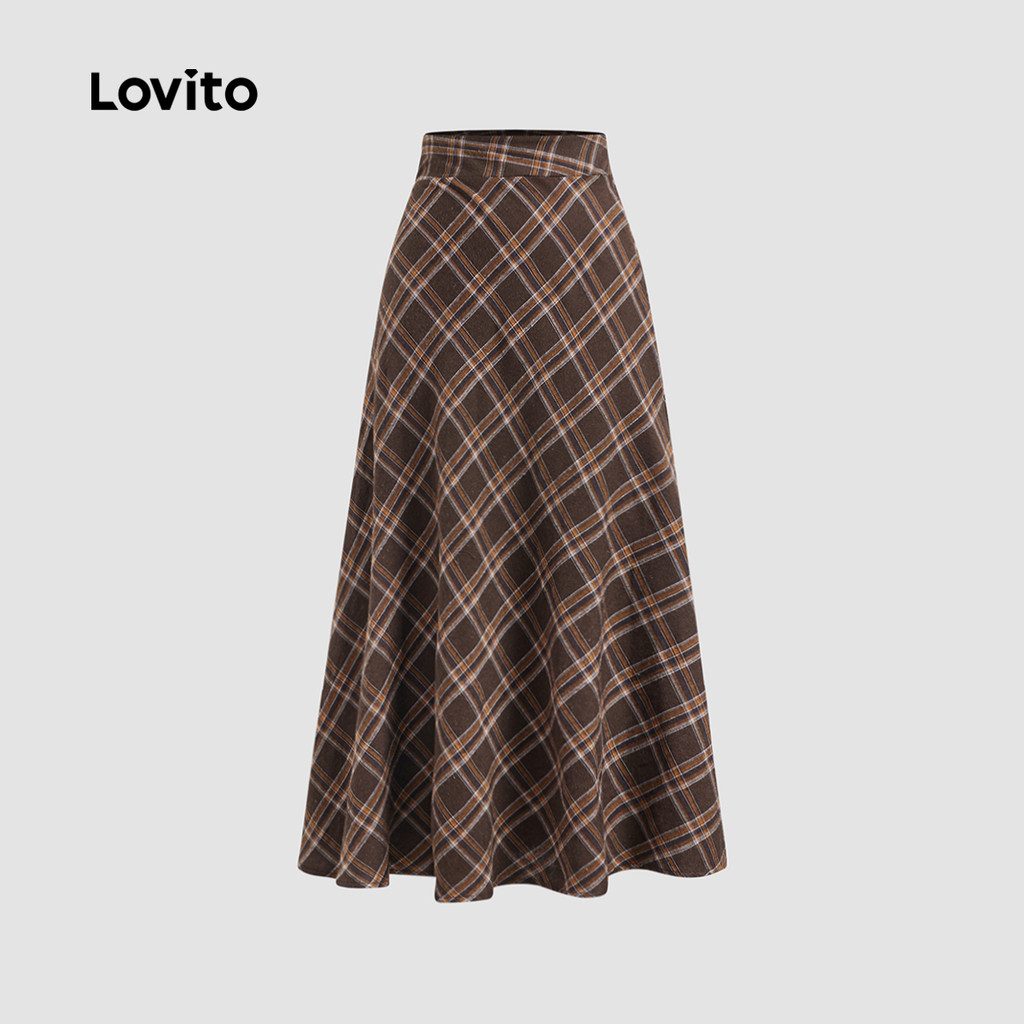 (Trendy) Lovito Saia elegante com costura em tecido xadrez para mulheres LBL22556