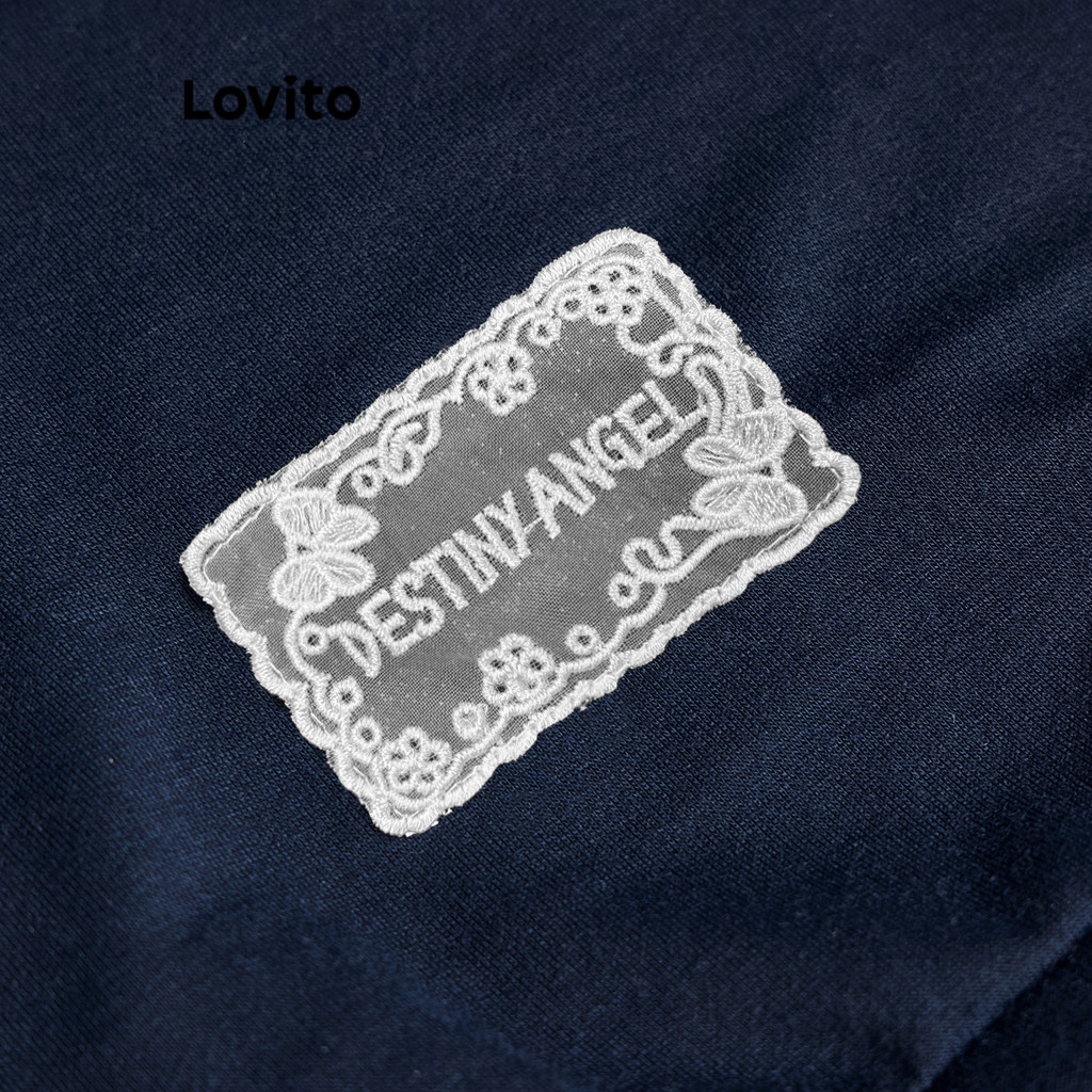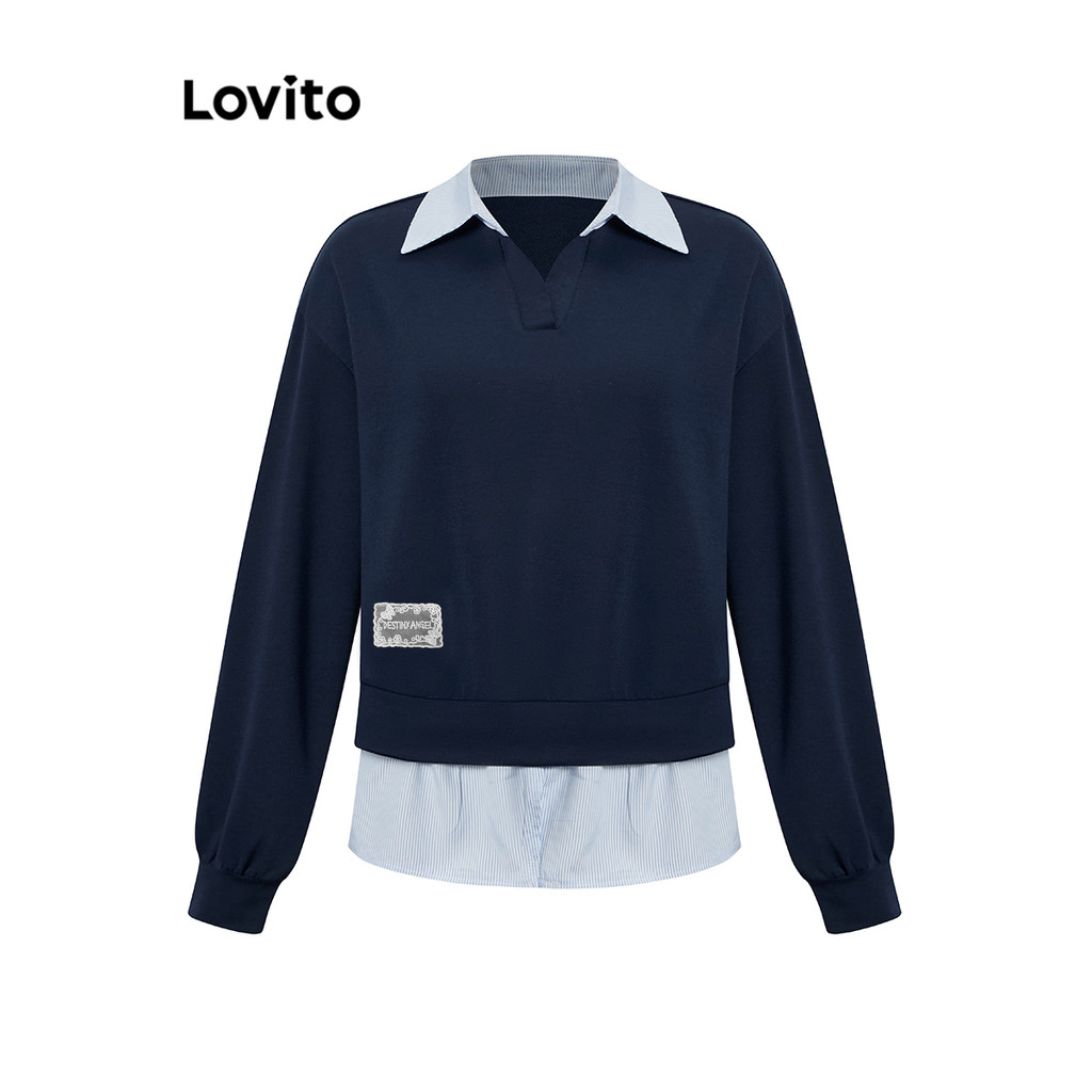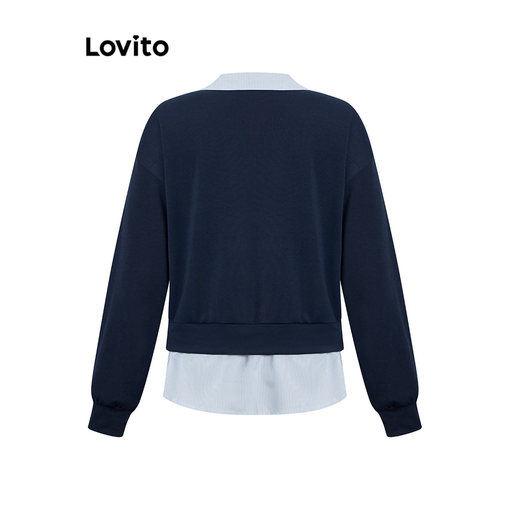 Lovito Moletom Feminino Formal Patchwork Tecido Costura Gola Contrastante De Renda L102AD217