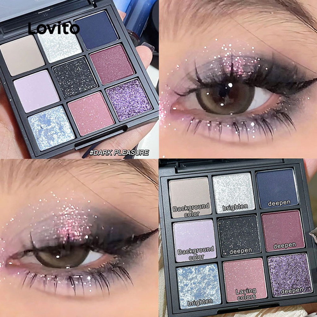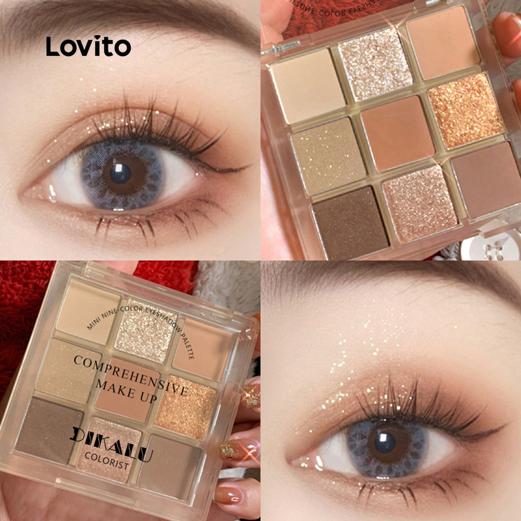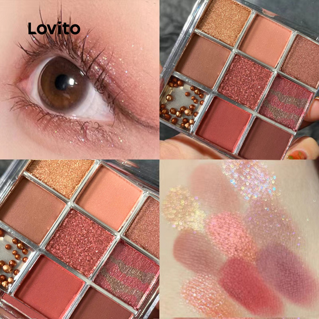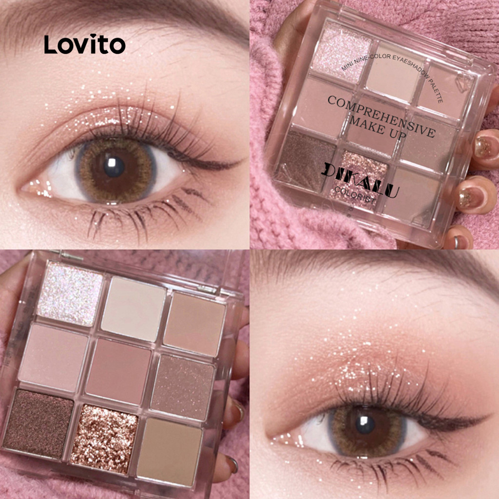 Lovito Paleta De Sombras Casuais Simples De 9 Cores Peroladas Finas Flash Sombras Esfumaçadas Para Mulheres LCS09043