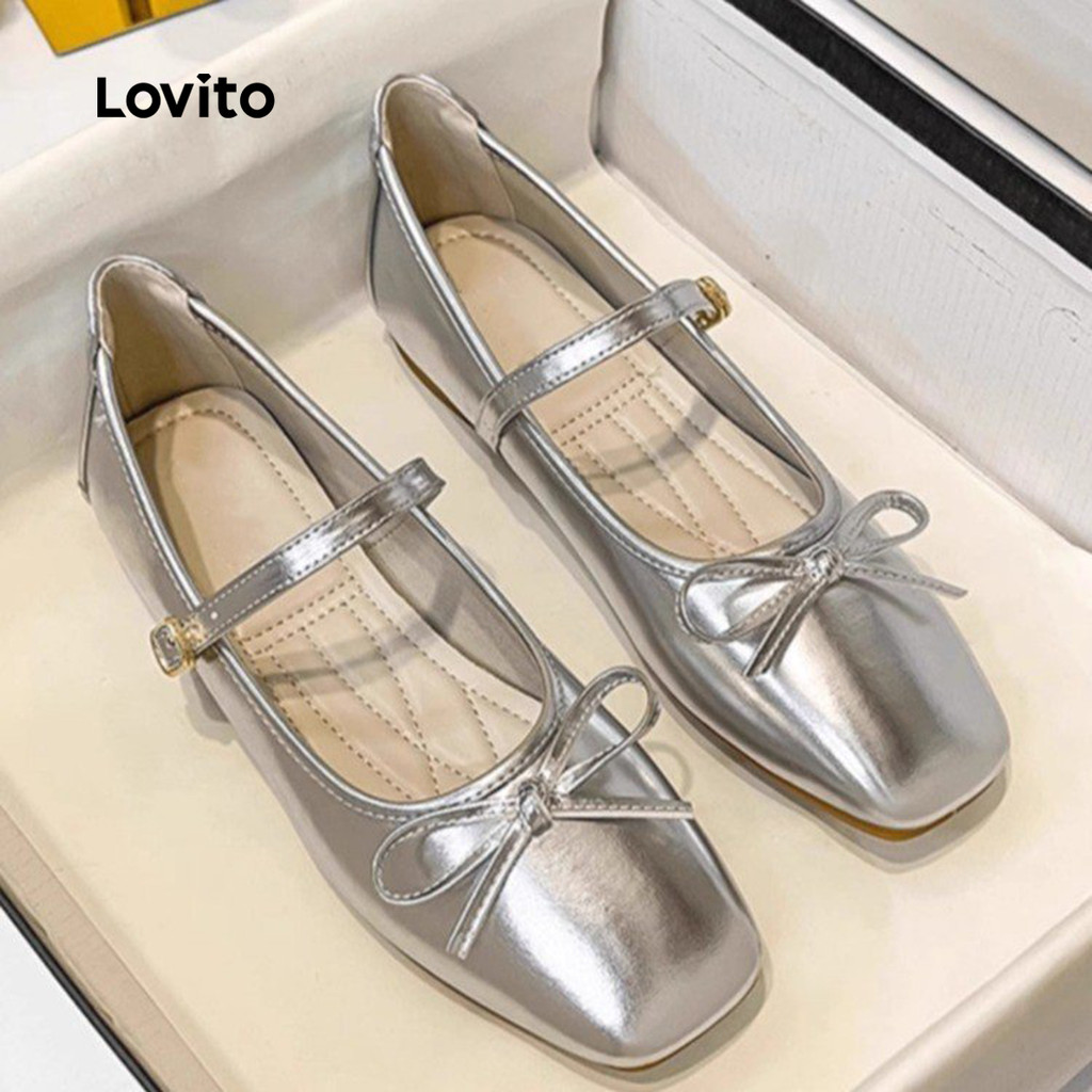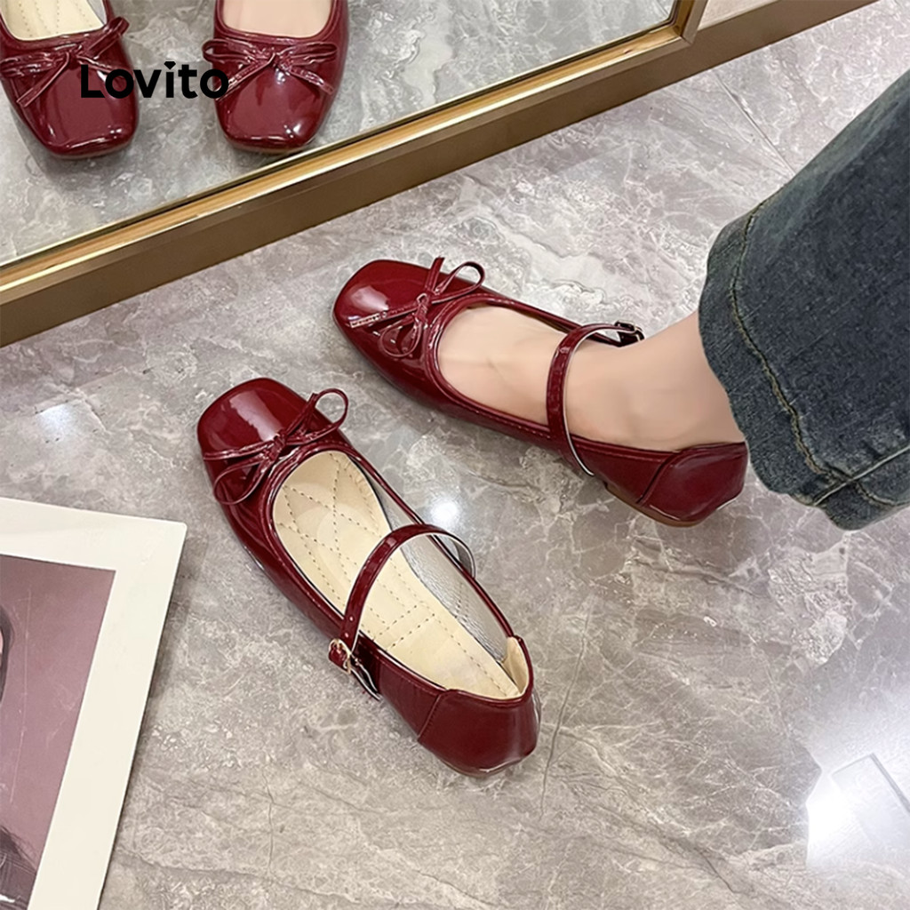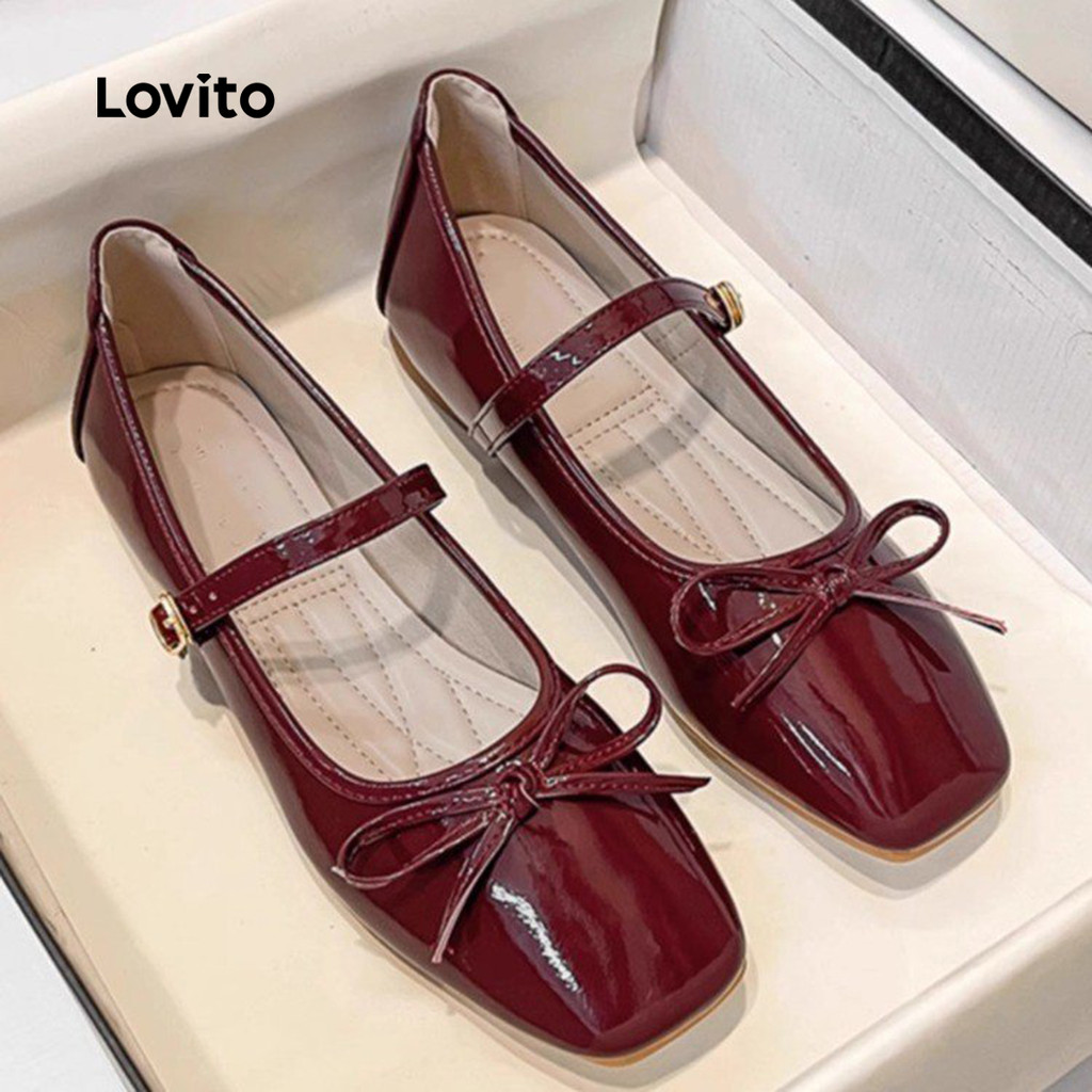 Lovito Sapatos Planos Elegantes Estilo Mary Janes com Laço para Todas As Estações Cor Bordô Mary Janes LFA86010