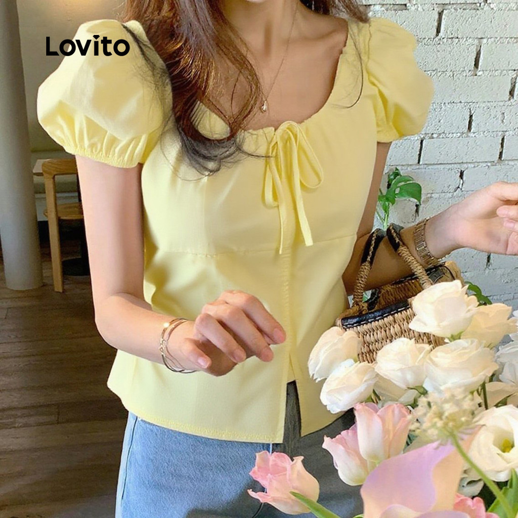 Lovito Blusa Casual De Férias Com Botões Frontais E Amarração Nas Costas Cor Amarela Primavera/verão L137LD457