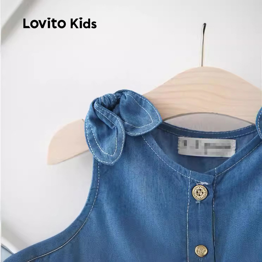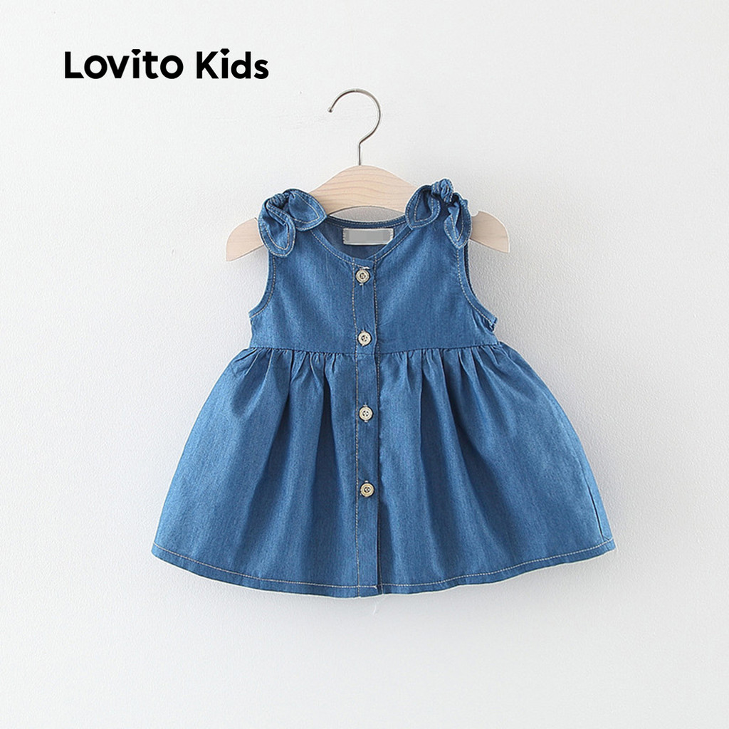 (New) Lovito Kids Vestido Casual com Laço Primavera/verão Azul para bebê LNL115104