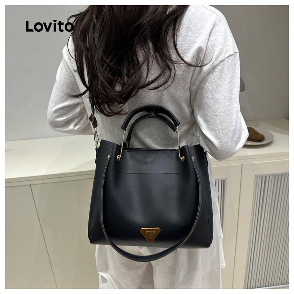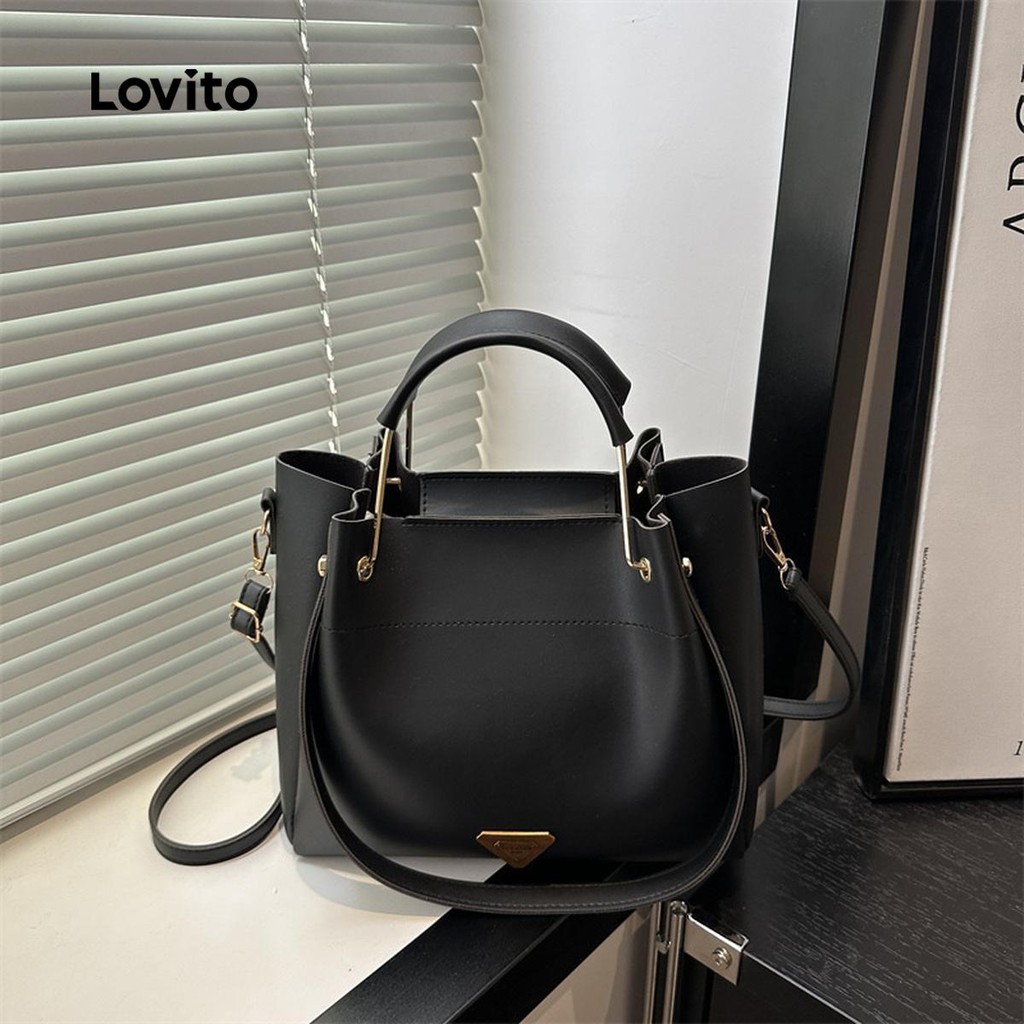 Lovito Saco de balde pequeno simples de alta qualidade, bolsa casual para ombro feminina LFA76051