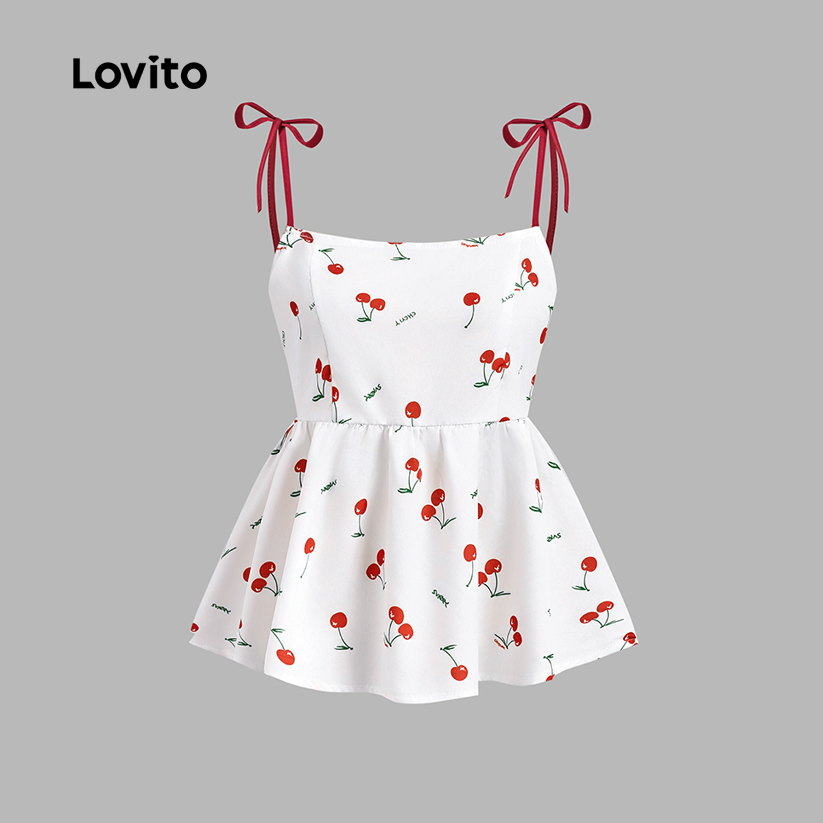 (Trendy) Lovito Regata feminina fofa com estampa Floral Ditsy com cadarço L125AD255