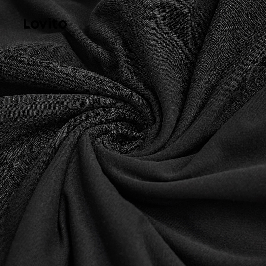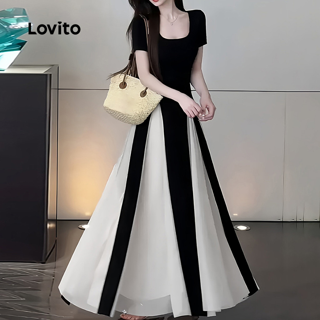 (Trendy) Lovito Vestido Casual Liso Colorblock Verão Primavera Preto E Branco Para Mulheres L134ED542