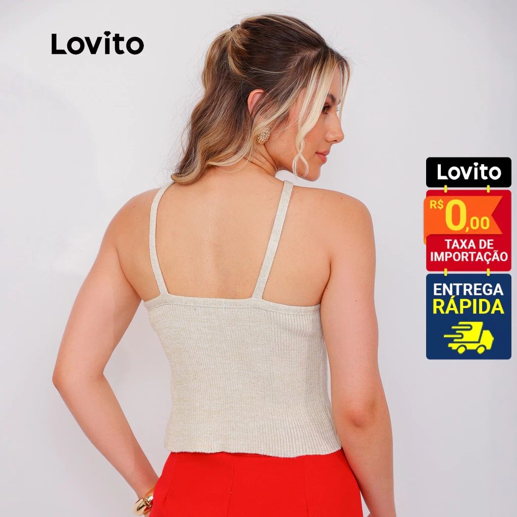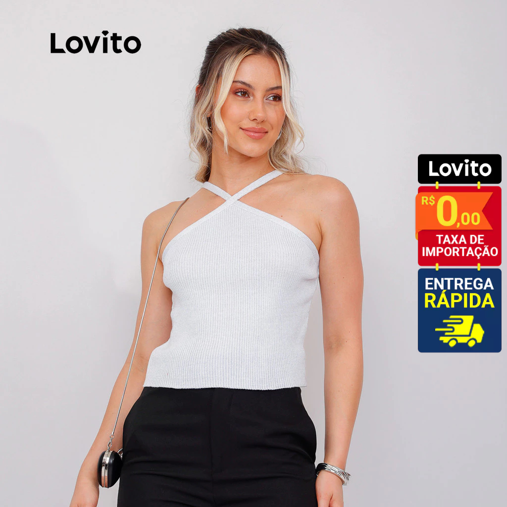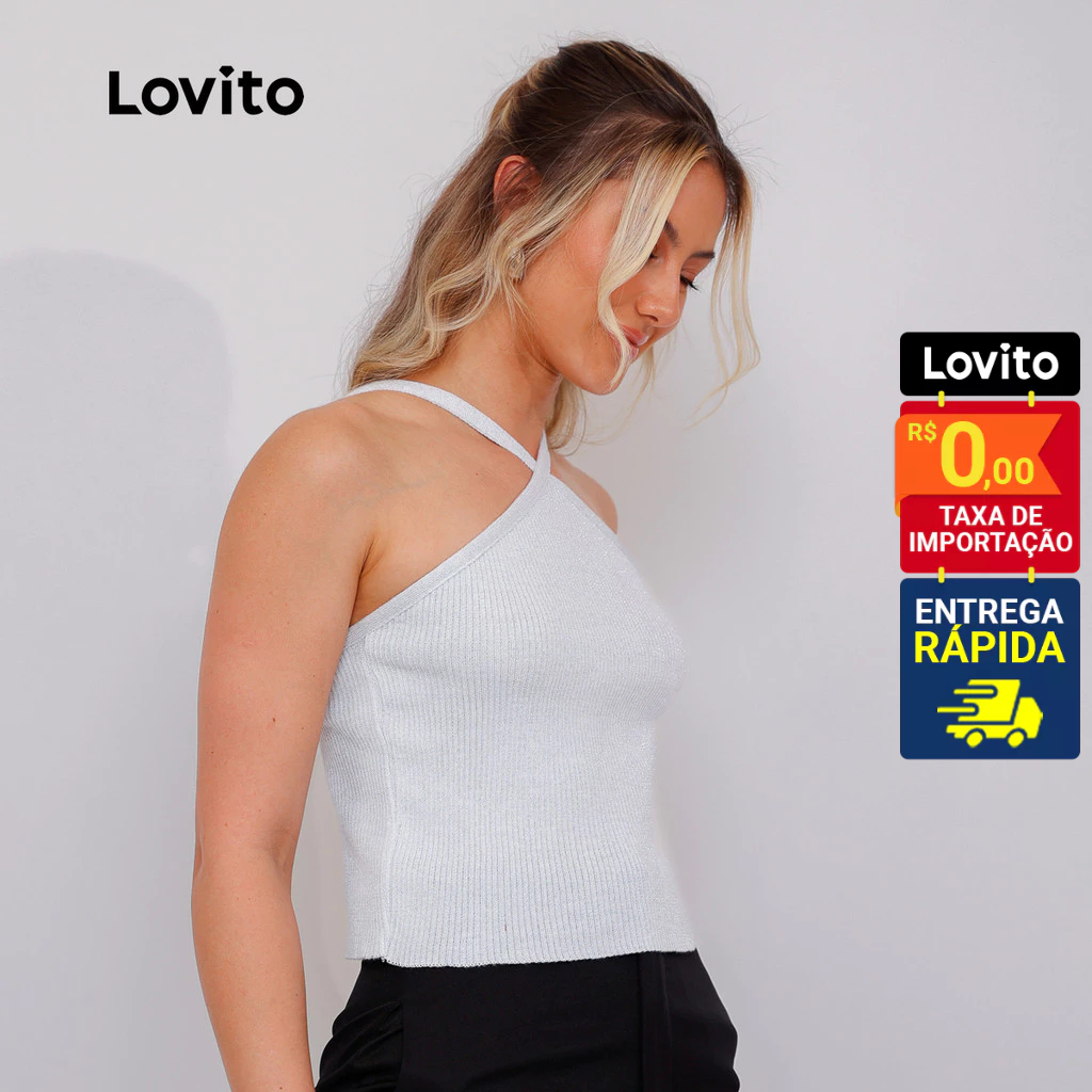 Lovito Top Feminino Lurex Alças Cruzadas de Tricô LB1169BRL1199