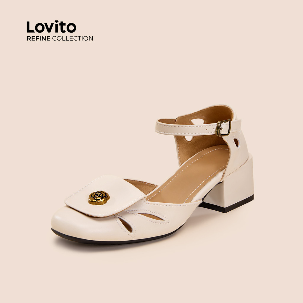 Lovito Refine Saltos Retrô Vintage Femininos Off-white LR13E445