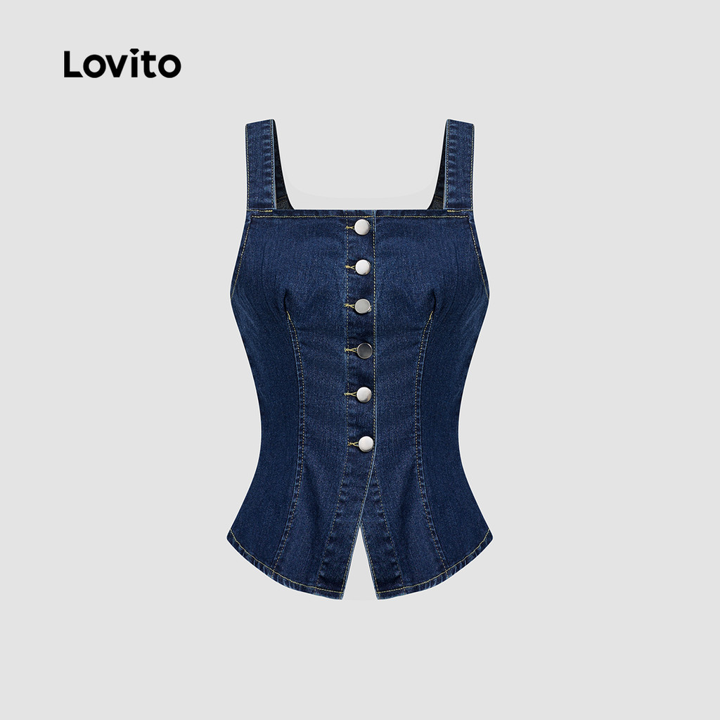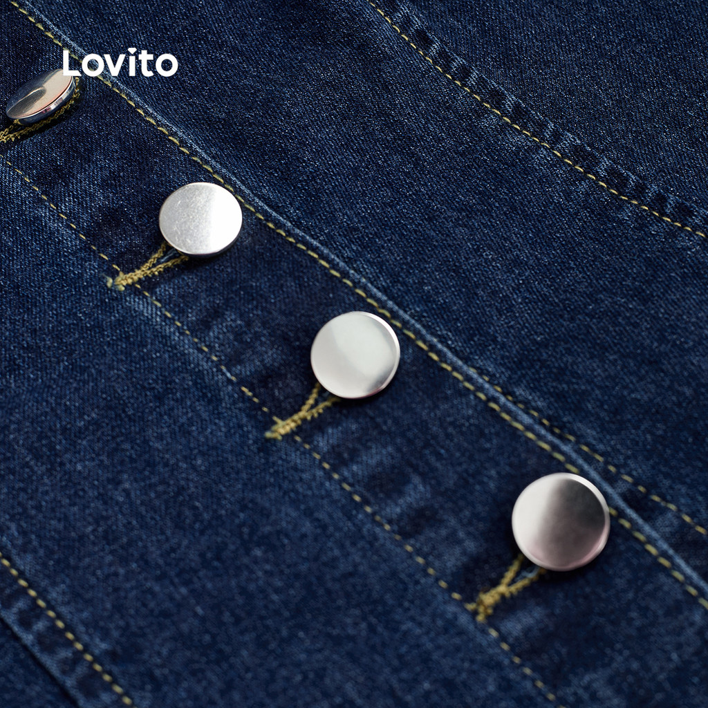 (NEW) Lovito Camisa Casual de Jeans com Botão e Abertura Primavera/verão Jeans Azul Escuro para Mulheres L155ED1644