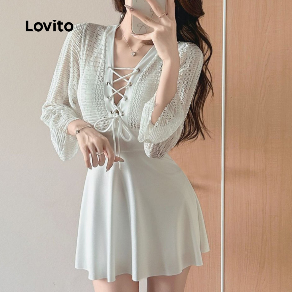 Lovito Maiô de Uma Peça Tecido Transparente para Primavera/verão Branco para mulheres. LNE134055