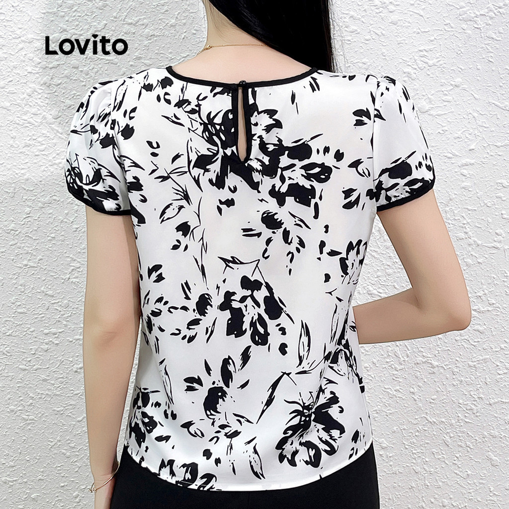 Lovito Blusa Elegante de Flores com Bloco de Cores para Primavera/verão para Mulheres L138ED335