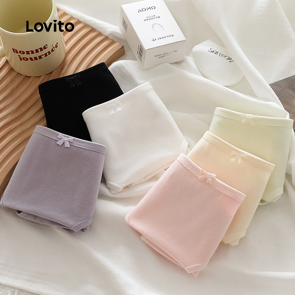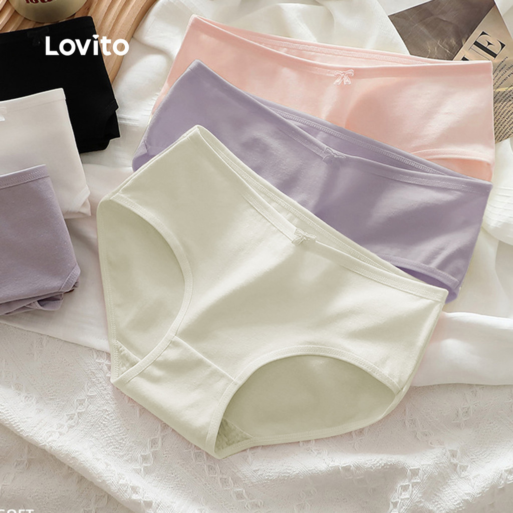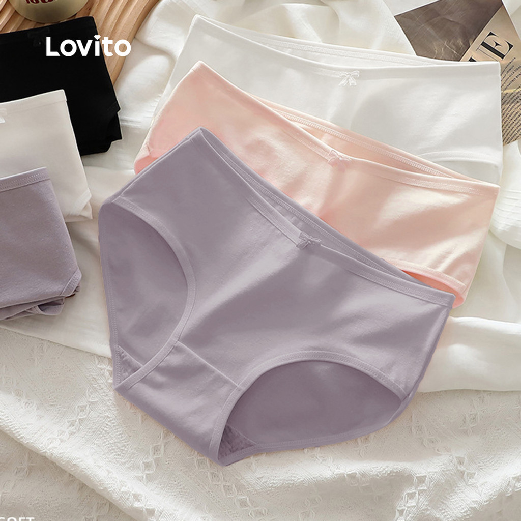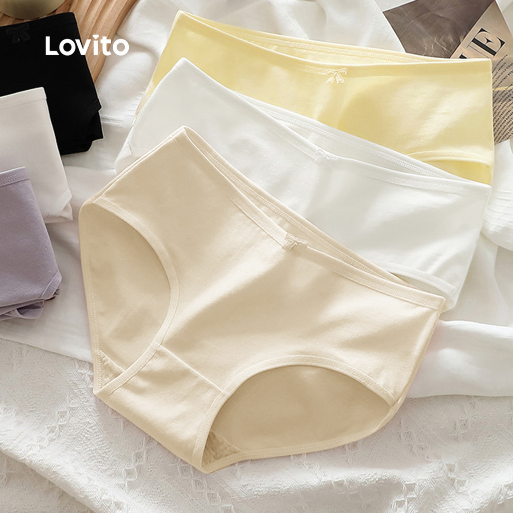 Lovito Conjunto de Calcinhas de Algodão, Respiráveis e Elásticas, 3 Peças, para Mulheres LNE113125