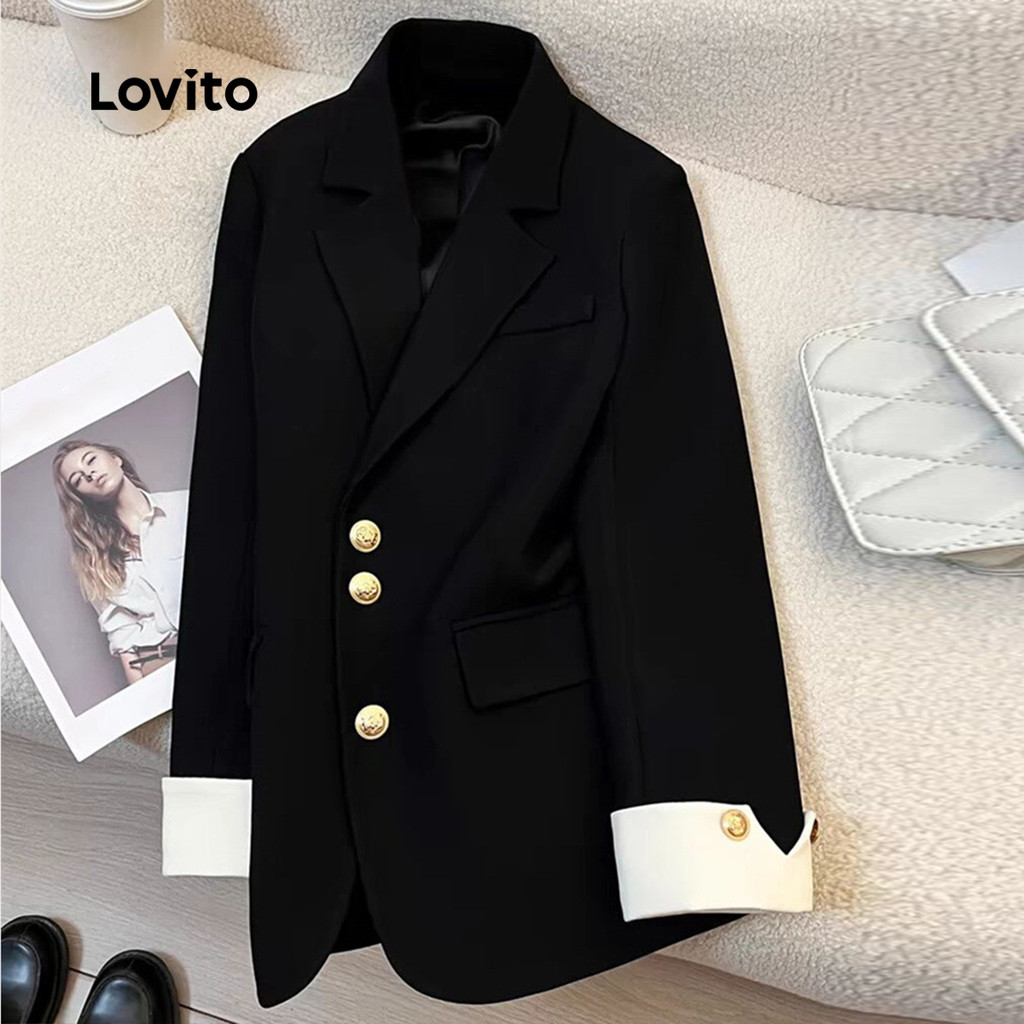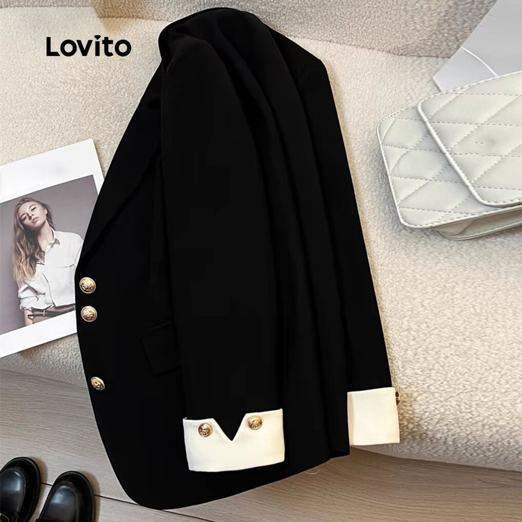 (Trendy) Lovito Blazer elegante e liso Colorblock para mulheres LNL101631