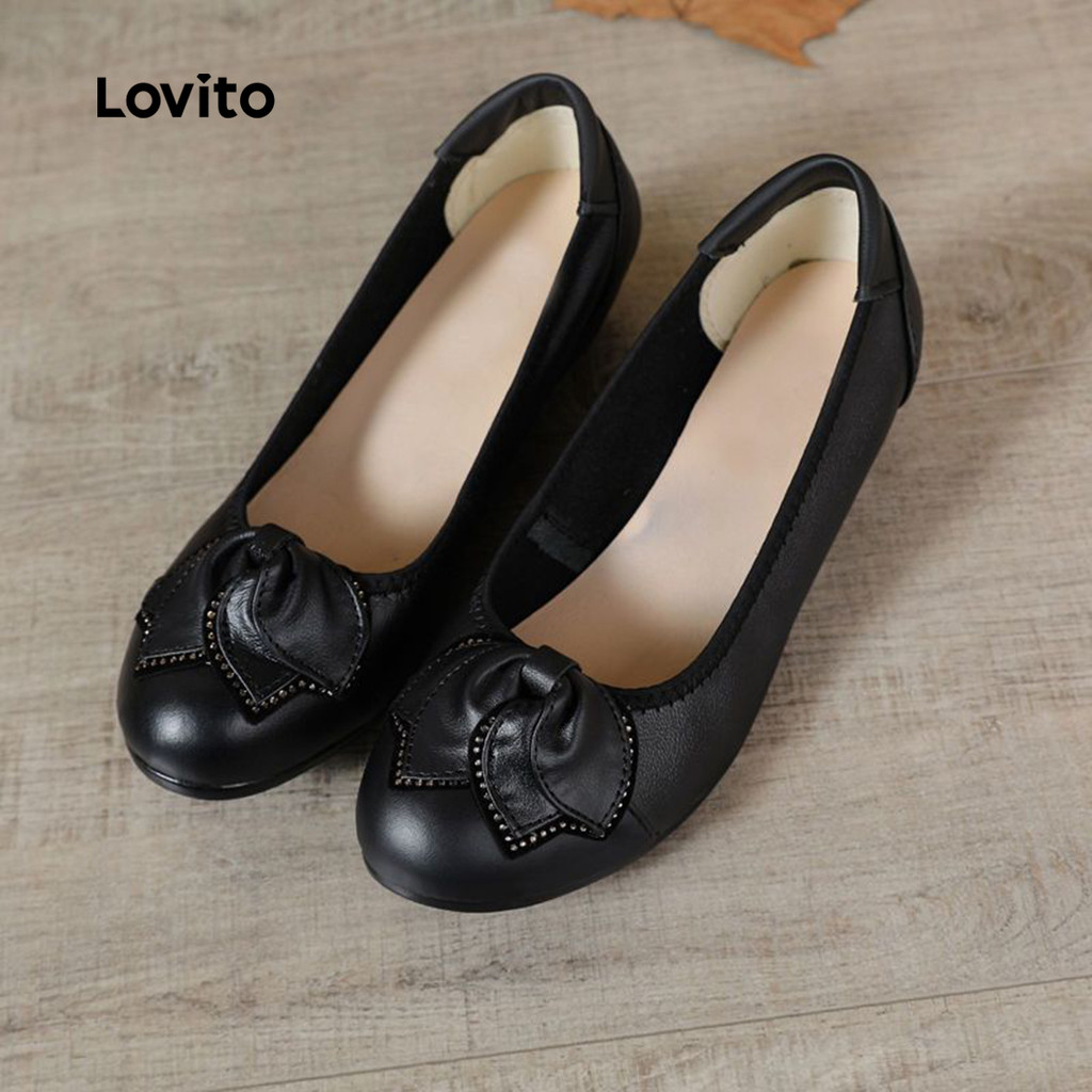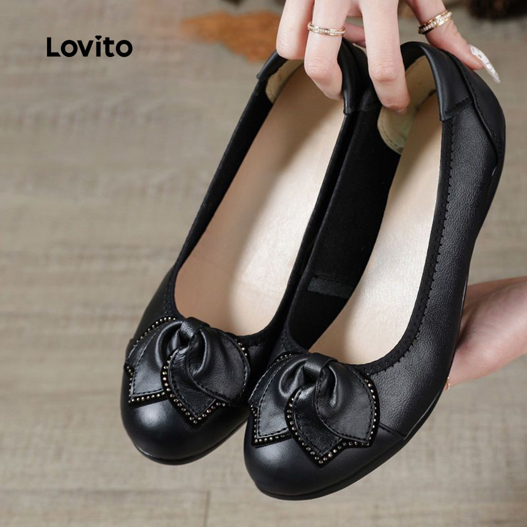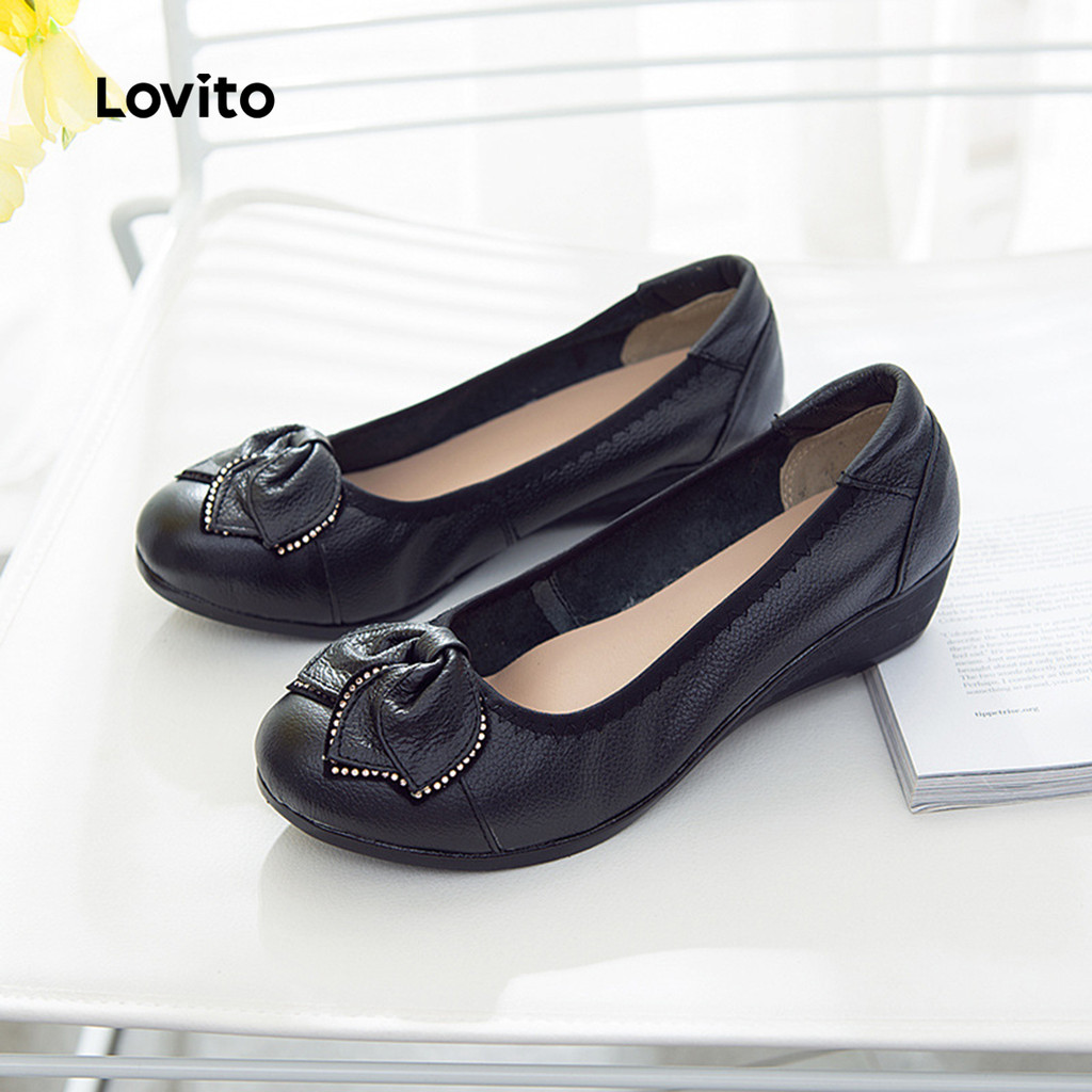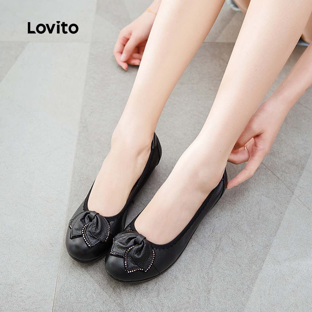 (Trendy) Lovito Elegante couro macio liso água sapatos de mãe sapatilhas de balé para mulheres LFA76317