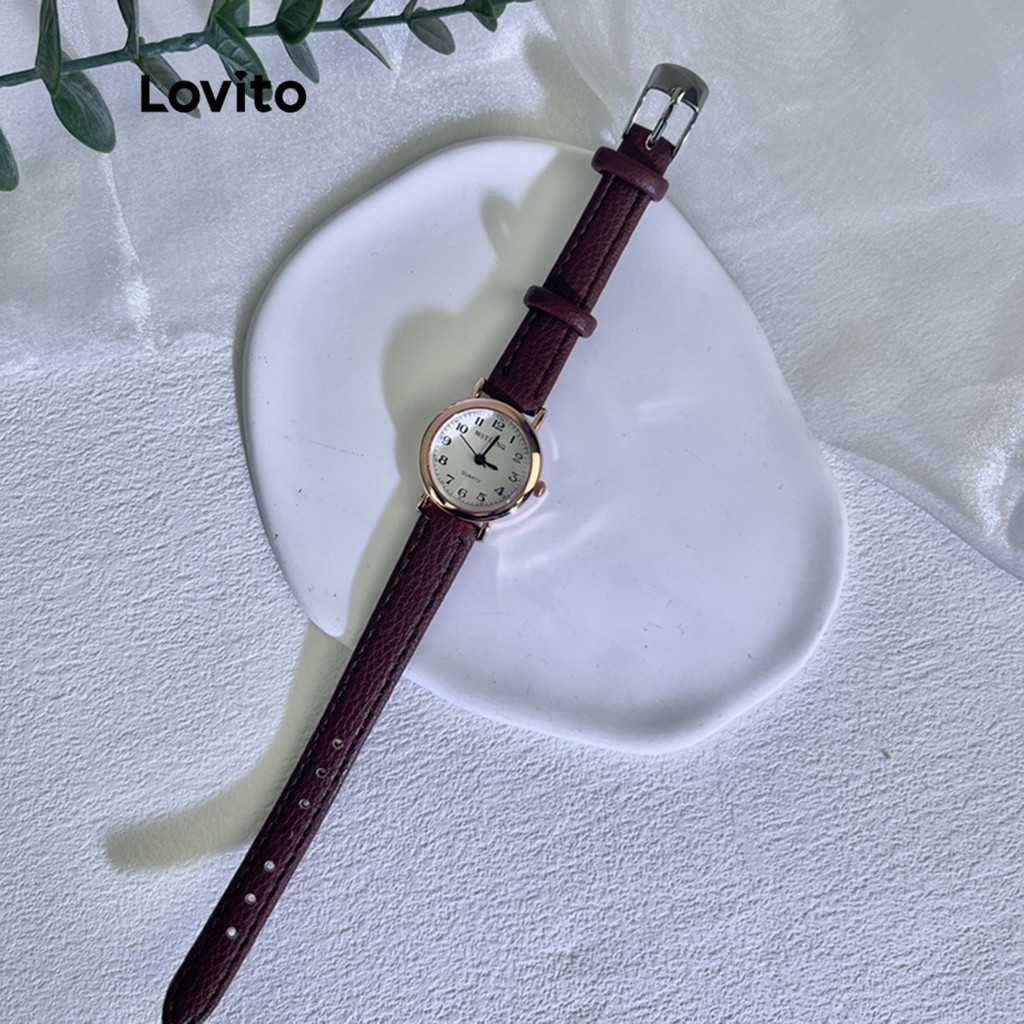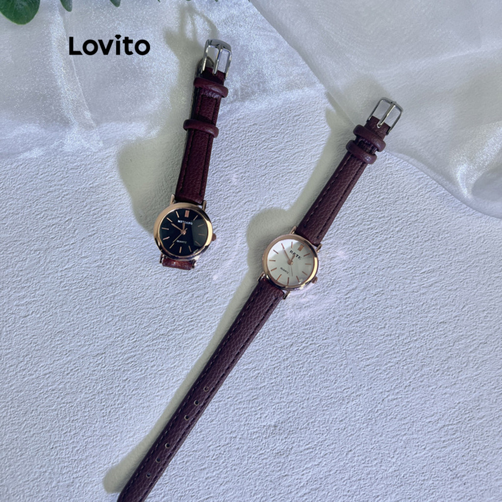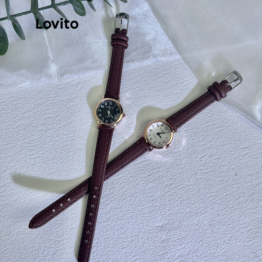 (Trendy) Lovito Relógio Digital de Quartzo Simples com Pulseira de PU para Mulheres LNA13102 (Branco/Preto)