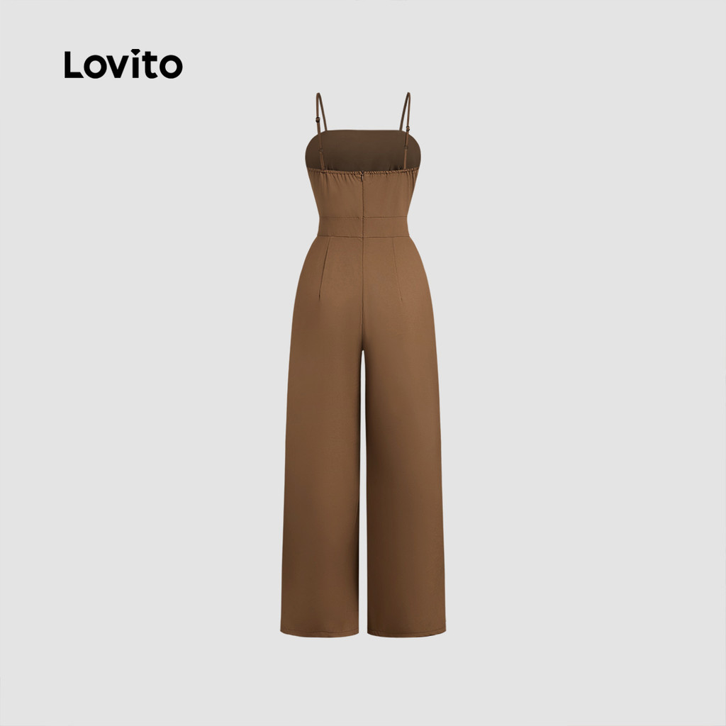(New) Lovito Macacão Elegante com Bolsos Primavera/verão Caqui para mulheres LBL28090