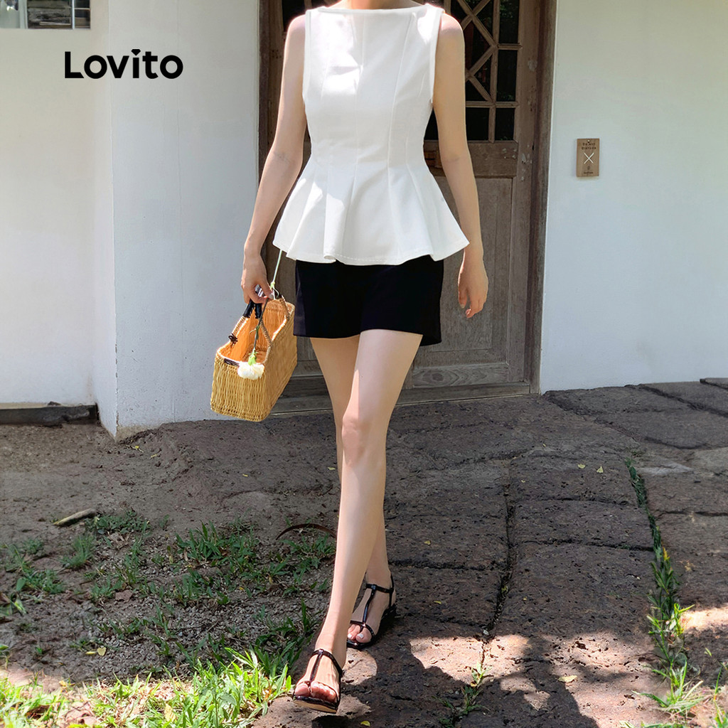 Lovito Estrutura Elegante de Topo Linha Zíper Primavera/verão Blusa Branca para Mulher L150AD751
