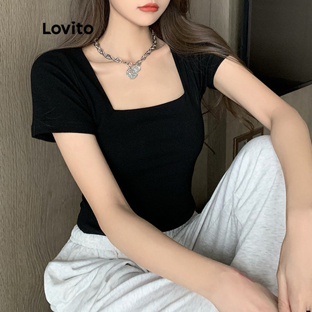 Lovito Blusa Feminina Casual Lisa com Gola Quadrada Lne11006 (Multicolorida)